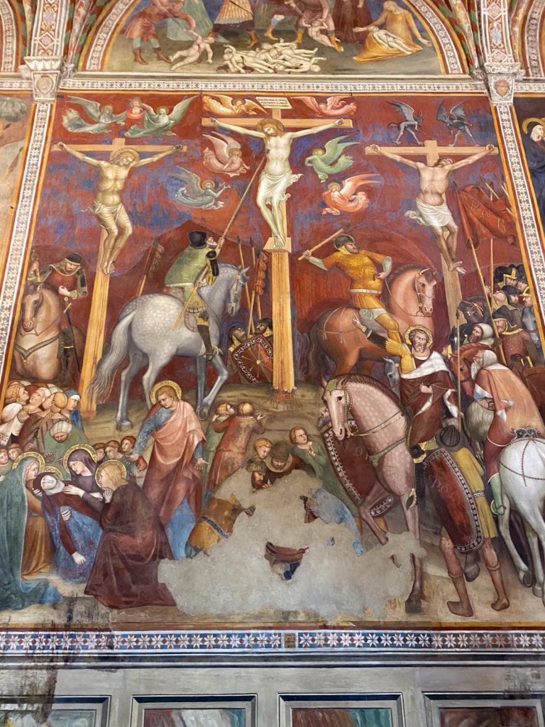 To the right you'll find the New Testament, in a series of frescoes by two brothers, Filippo and Federico Memmi. Their work was influenced by the admiration of their brother-in-law, Simone Martini - you can see Simone Martini's work in Siena.