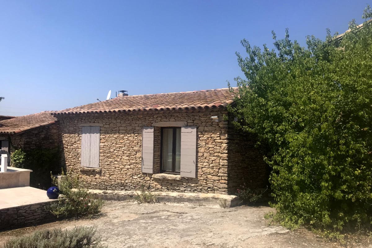 Maison de Timole is a pretty, stone-clad village house set on the edge of Cabrieres D'Avignon, a medieval village dating beyond the 11th century. Its rear garden overlooks the countryside leading to the famous 'Mur de la Peste' and the front garden, once the area for villagers to bring their corn to be threshed, has views to the nearby Luberon Mountains visible above the old Provencal tiled roofs of the nearby village houses. Its rare to find such a peaceful village house, minutes from shops and restaurants. Within 10 minutes on foot you can return to the house with a bag full of croissants and a baguette tucked under your arm, ready for a leisurely breakfast on the terrace under the shady mulberry tree.