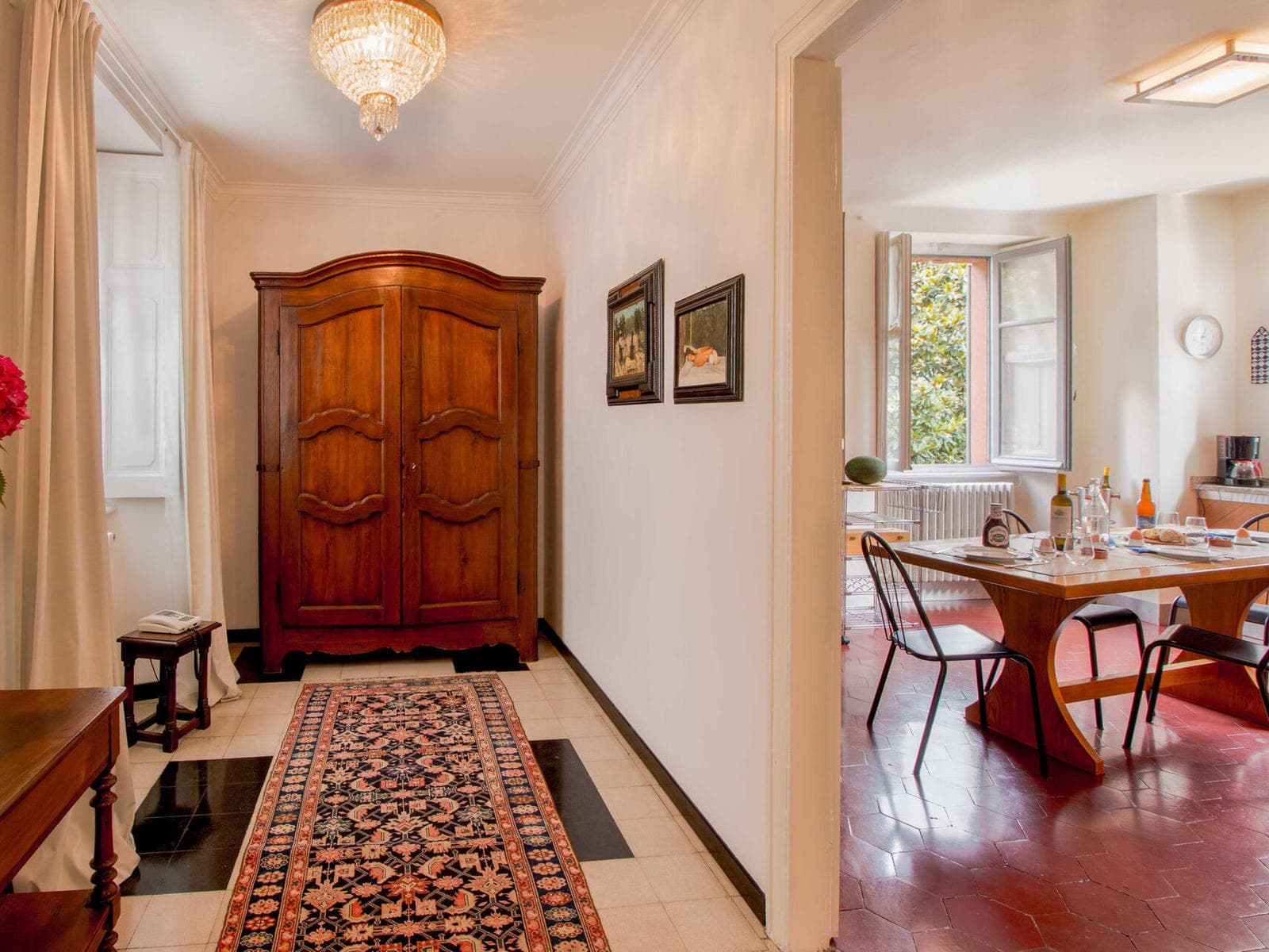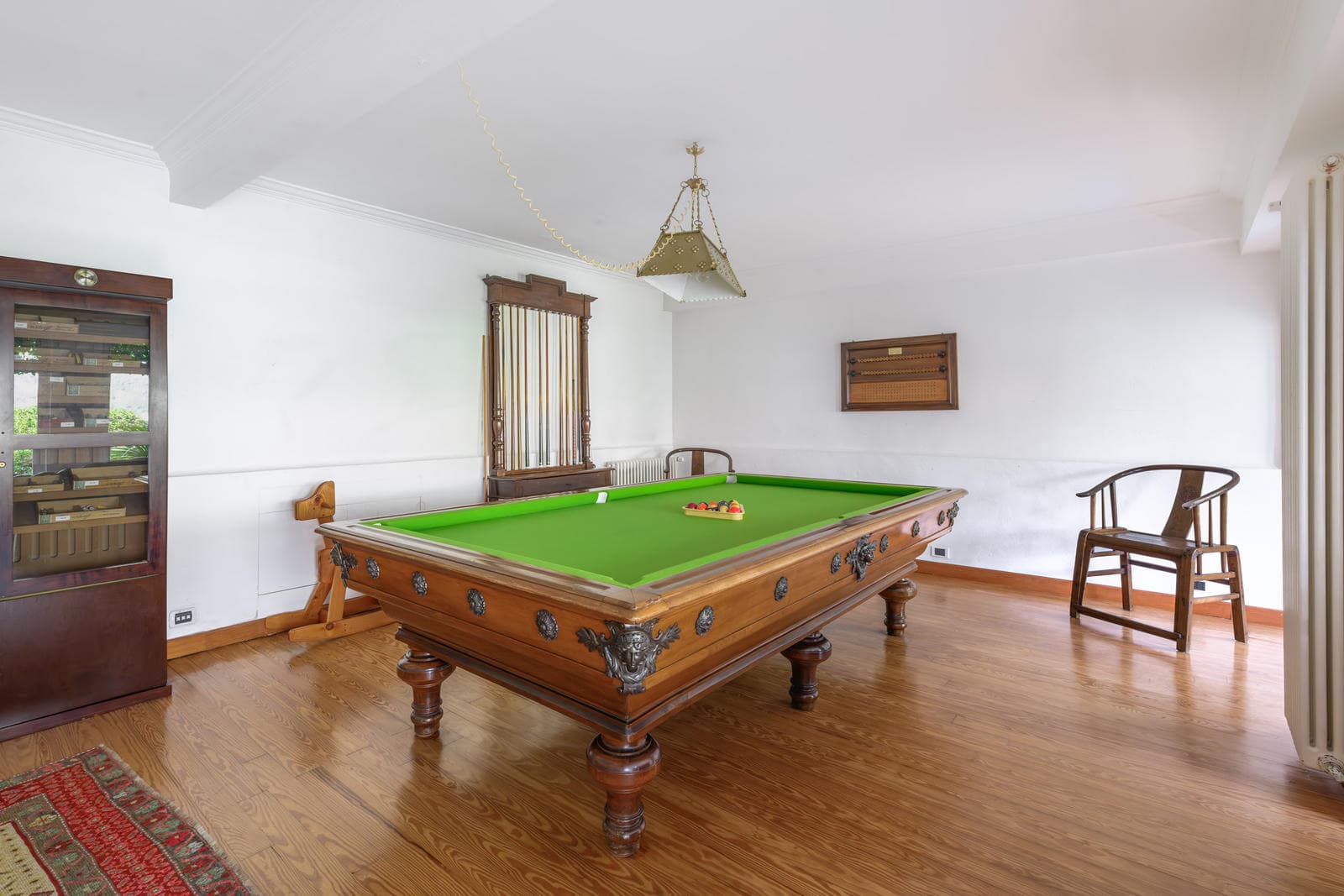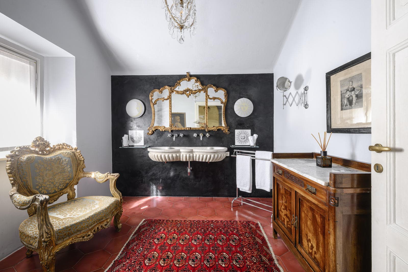 The villa’s interior spans 400 square meters across three floors, in a seamless blend of timeless elegance and contemporary convenience, featuring a curated collection of homeware and furniture from renowned designers, architects and artists such as Fornasetti, Gae Aulenti and Roberto Minotti. The garden is accessible via a stairway, equipped with chairs and sunbeds shadowed by a century-old Lebanon Cedar tree and an Olea fragrans that scents the air with its fragrant white flowers. At the heart of the garden lies a fishpond adorned with a waterfall and a bronze statue depicting a Faun, inviting guests to immerse themselves in the splendour of their surroundings.