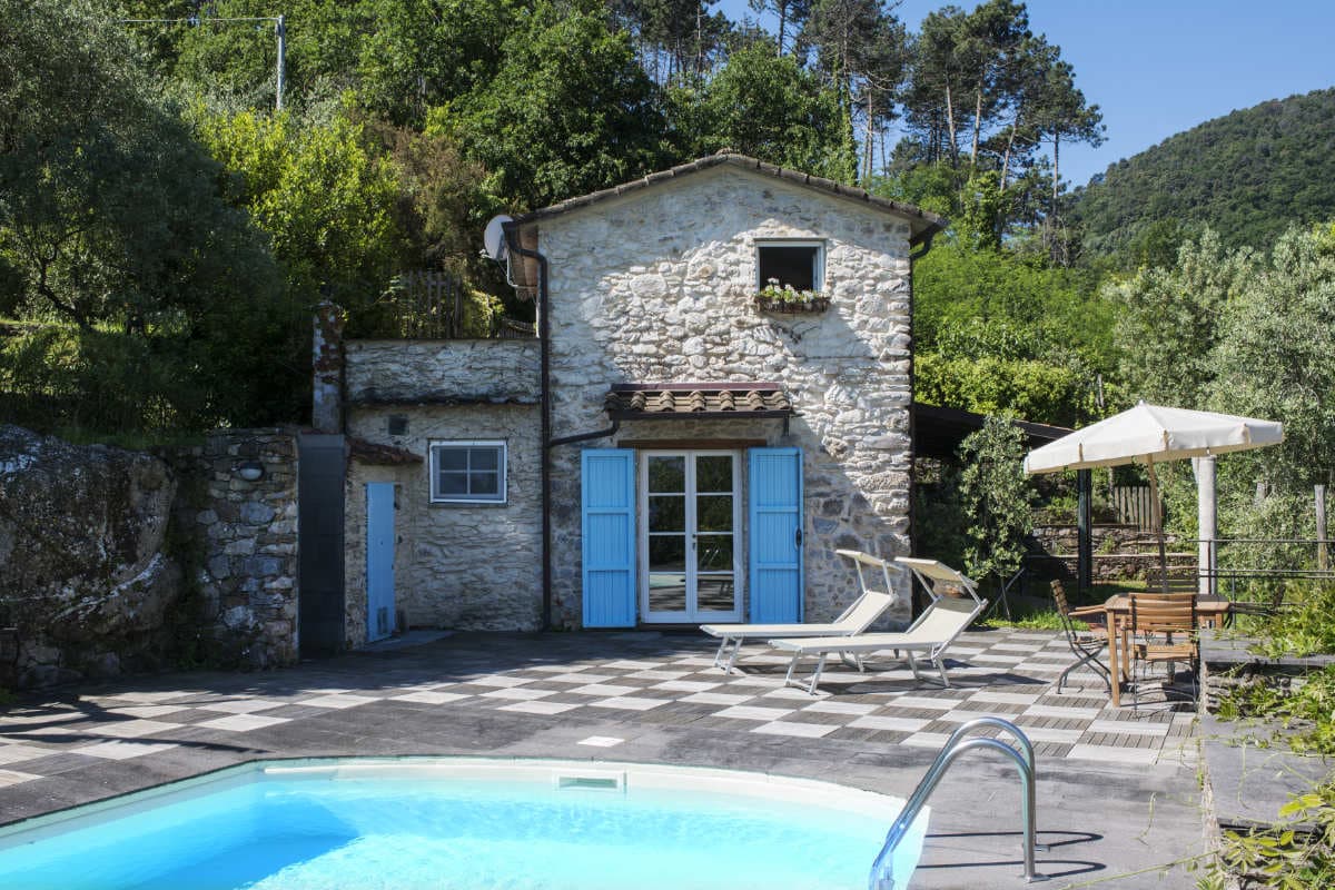 In a quiet hillside position, opposite the ancient hill village of Ameglia, this cottage has beautiful views both of the Magra estuary and of the Apuan marble mountains, as well as a swimming pool and furnished patio from which to survey it all.