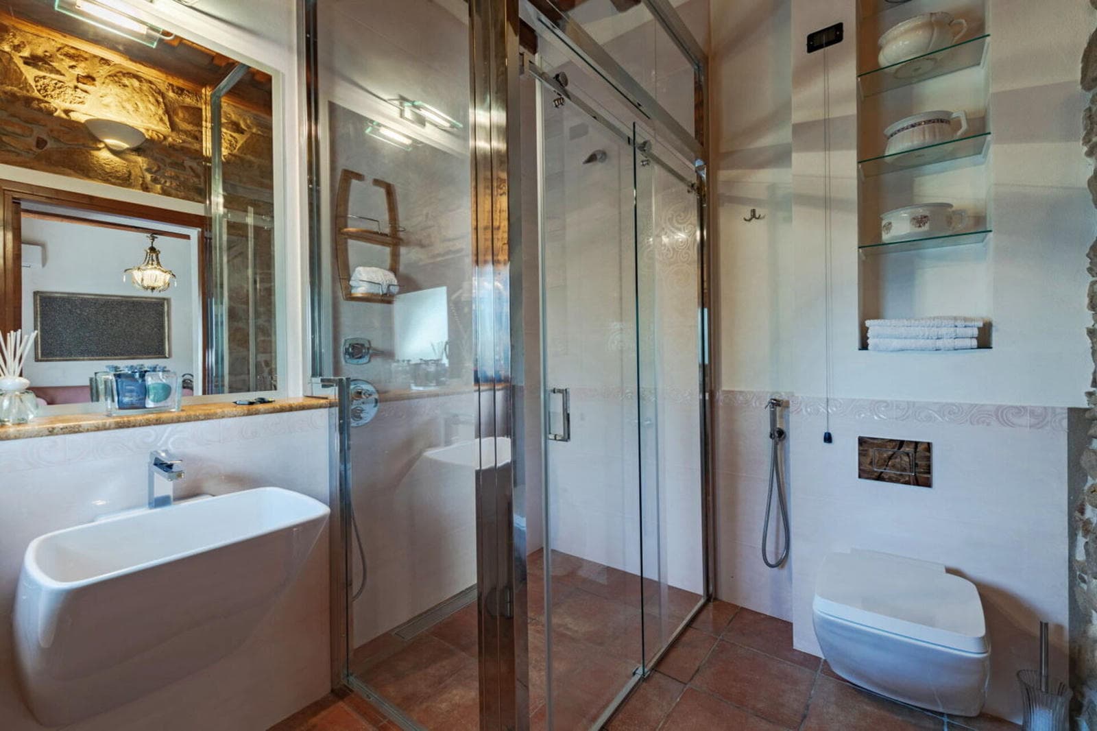 On the first floor there is a double bedroom with a queen bed (160 x180 m) with a private bathroom with shower and access to two private roof terraces.