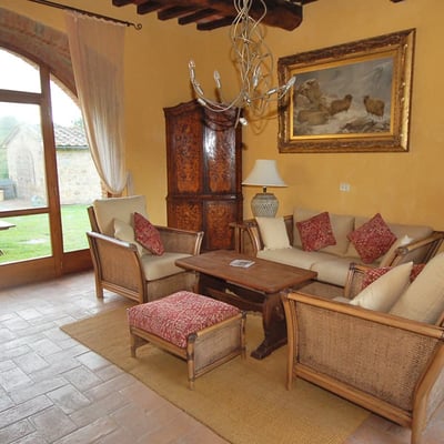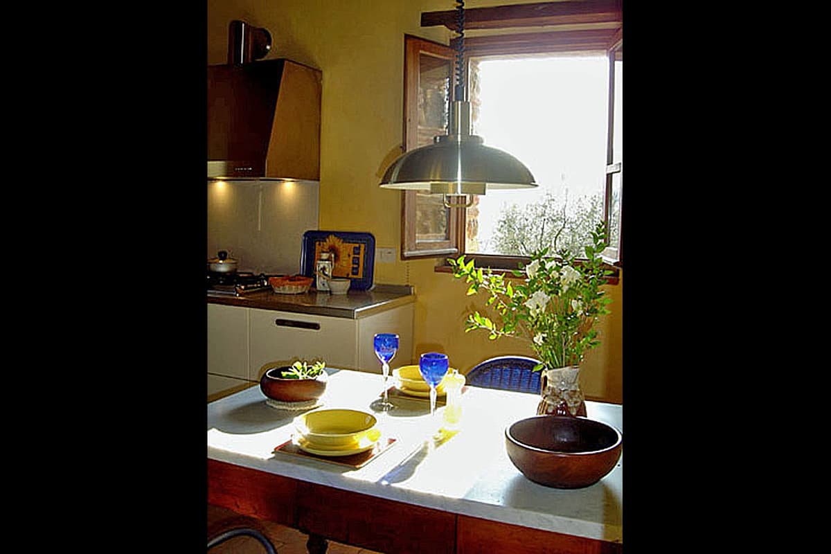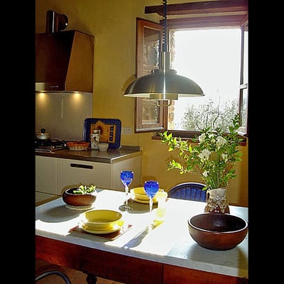 This apartment, like the other two on the estate, has an individual outdoor eating area and easy access to the spacious pool area whose sun loungers, umbrellas, tables and night lighting make it a popular spot day and night. The surrounding hectares, once cultivated in grain, are now planted with olive and walnut trees, some strung with hammocks to make the most of a shaded afternoon snooze. The owner, who lives with her family on the top floor of the farmhouse, is an excellent resource. And at this property there are many 'extra' possibilities - horse stables you can walk to, cooking lessons and meals done by a lovely Italian, tours and transport to corners you've yet to discover, outlet shopping, and bike rentals for those who would tour Tuscany in a slower lane.