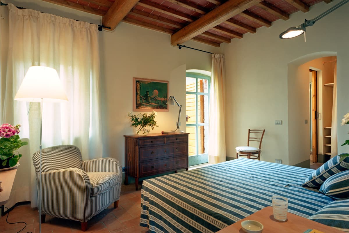 Yet even before hopping into the car to go exploring, the estate’s wooded panorama, reaching as high as the Pratomagno mountains, may well inspire guests to follow paths through their 800 hectares. Or perhaps join a guided hike and wine tasting tour through the nearby village of Castelfranco whose dramatic landscape and colourful eroded shapes, the ‘Balze’, featured in the background of Leonardo da Vinci’s ‘Mona Lisa’. Certainly, with stables nearby and bikes easily arranged, life in the slow lane is a wonderful way to discover your surroundings, and with a beautiful house as your base and a restorative pool at hand, a Tuscan holiday will soon find its rightful rhythm.