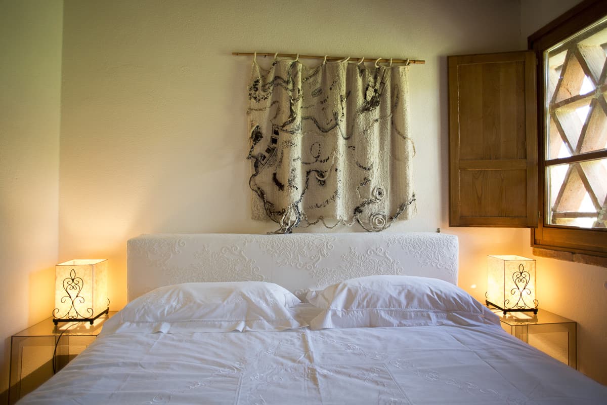 This apartment sits across the drive from the main house and is entered through arched glass doors into a sitting room with two bright sofas, which can double as two single beds, 1 for a child and 1 for an adult.
