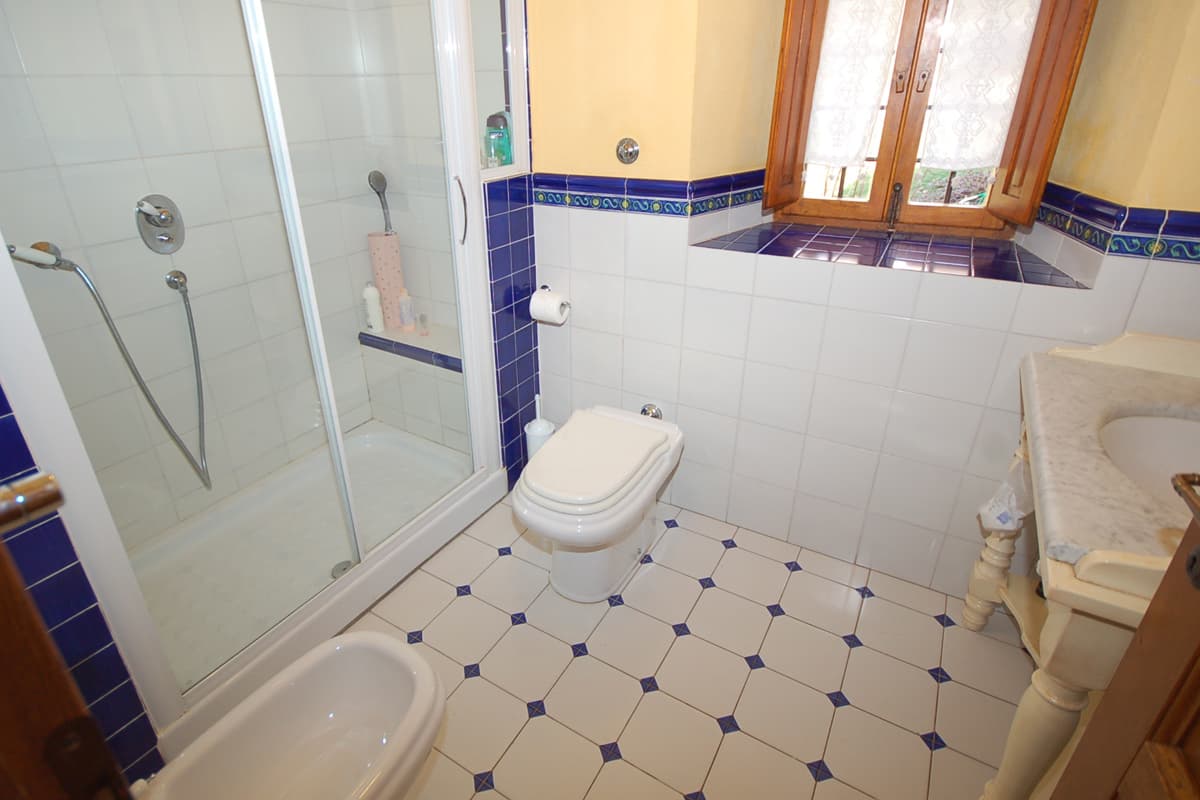 Also from the sitting room is a door out to a furnished panoramic loggia from which an external staircase leads down to a handy path around to the kitchen door, making the loggia a delightful place for lunch or an evening aperitif.