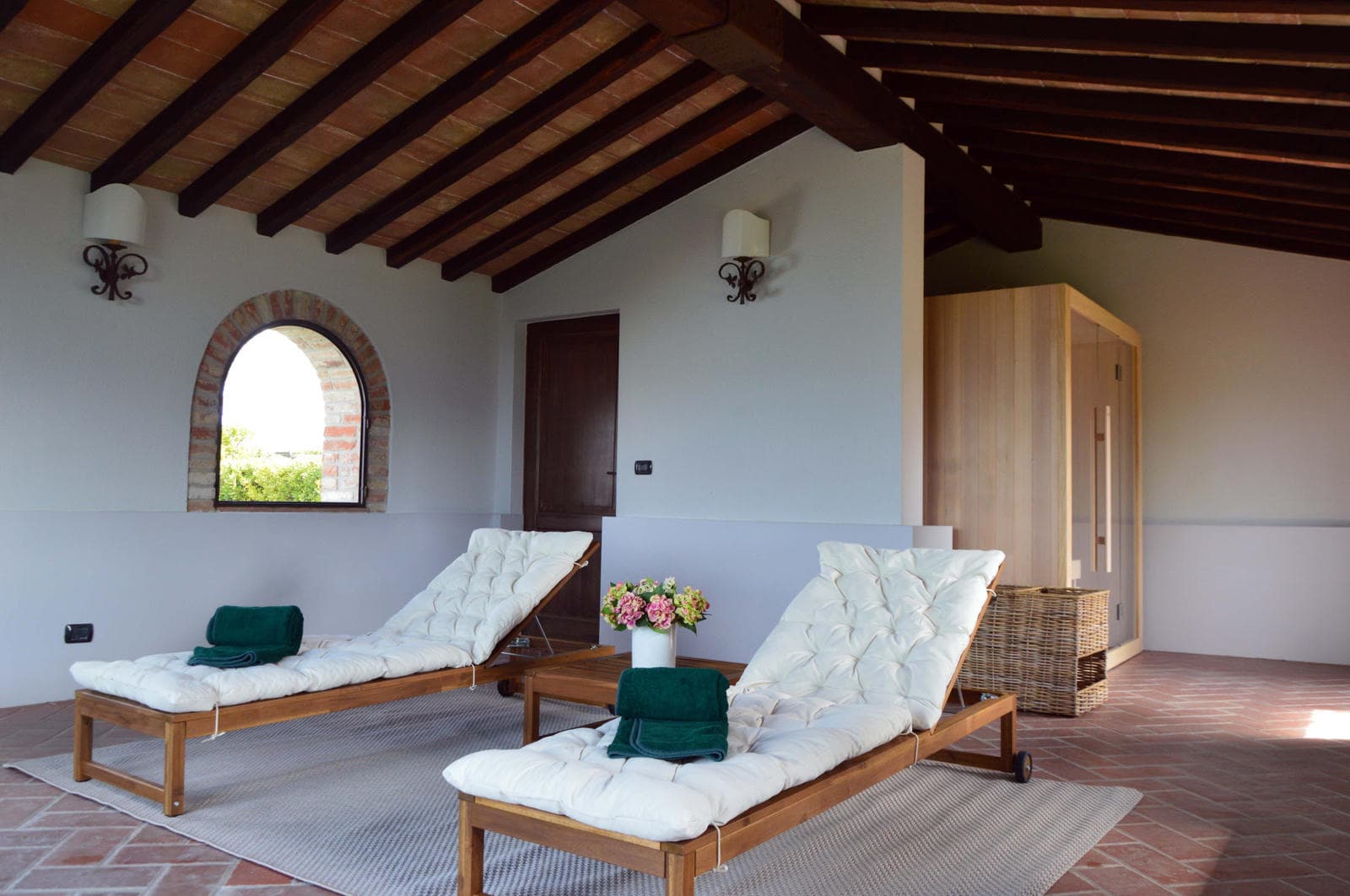 The furnishings give Villa Selva the character of a family home. The rooms feature antique "cotto" floors, strong beams supporting the roof, a large fireplace, antique furniture and some contemporary design pieces.