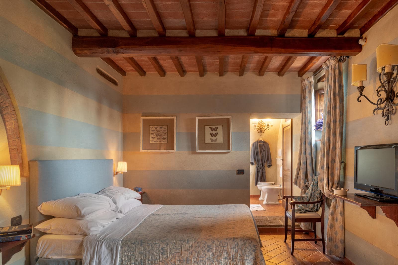 Visiting the famous art cities of Siena, Arezzo and Florence is easy from here: Siena is 30 minutes away, Arezzo 45 and Florence just over an hour. Montalcino, Pienza, Cortona and the hills of Chianti are no more than an hour away
