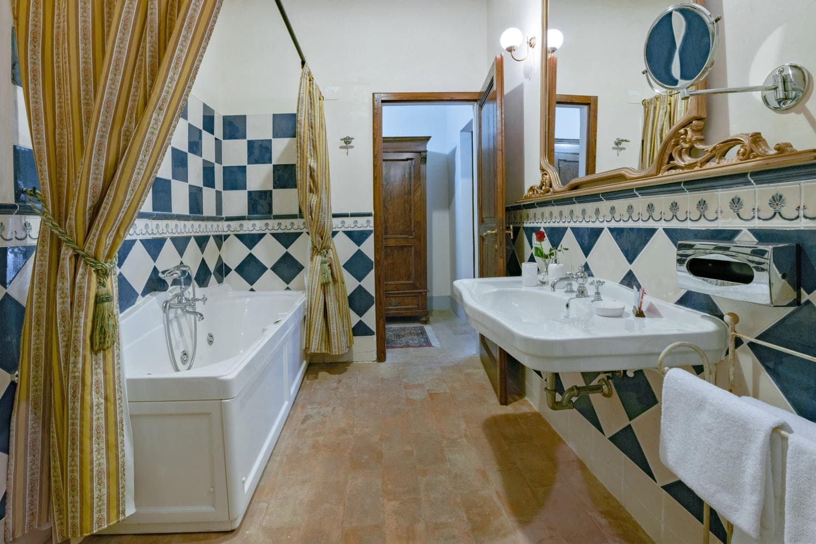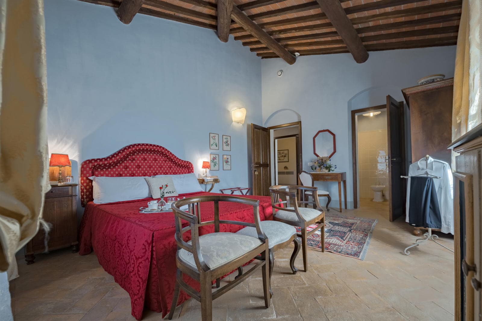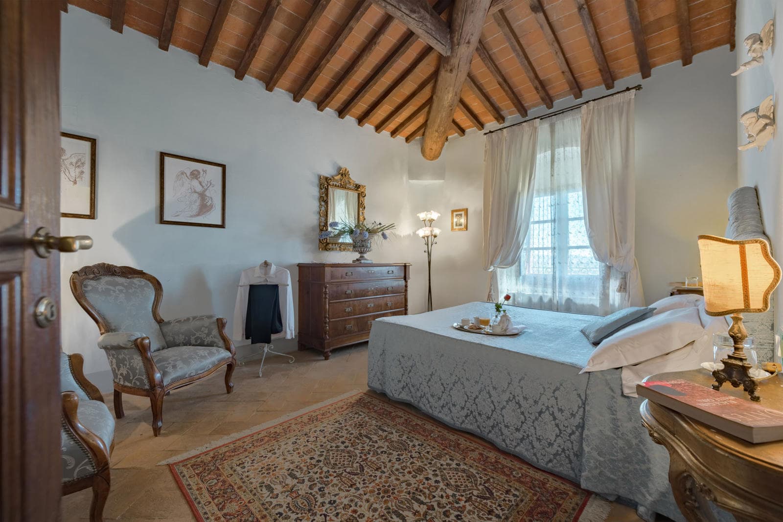Set amidst olive groves and gently rolling gardens, Villa Anatra is an exclusive private villa with easy access to renowned artistic and historical cities like Florence, Siena, Cortona, Assisi, Montepulciano, and Chianti. The villa has been lovingly restored, retaining its original features like terracotta floors, stone-framed casements, wooden beams, and brick ceilings.