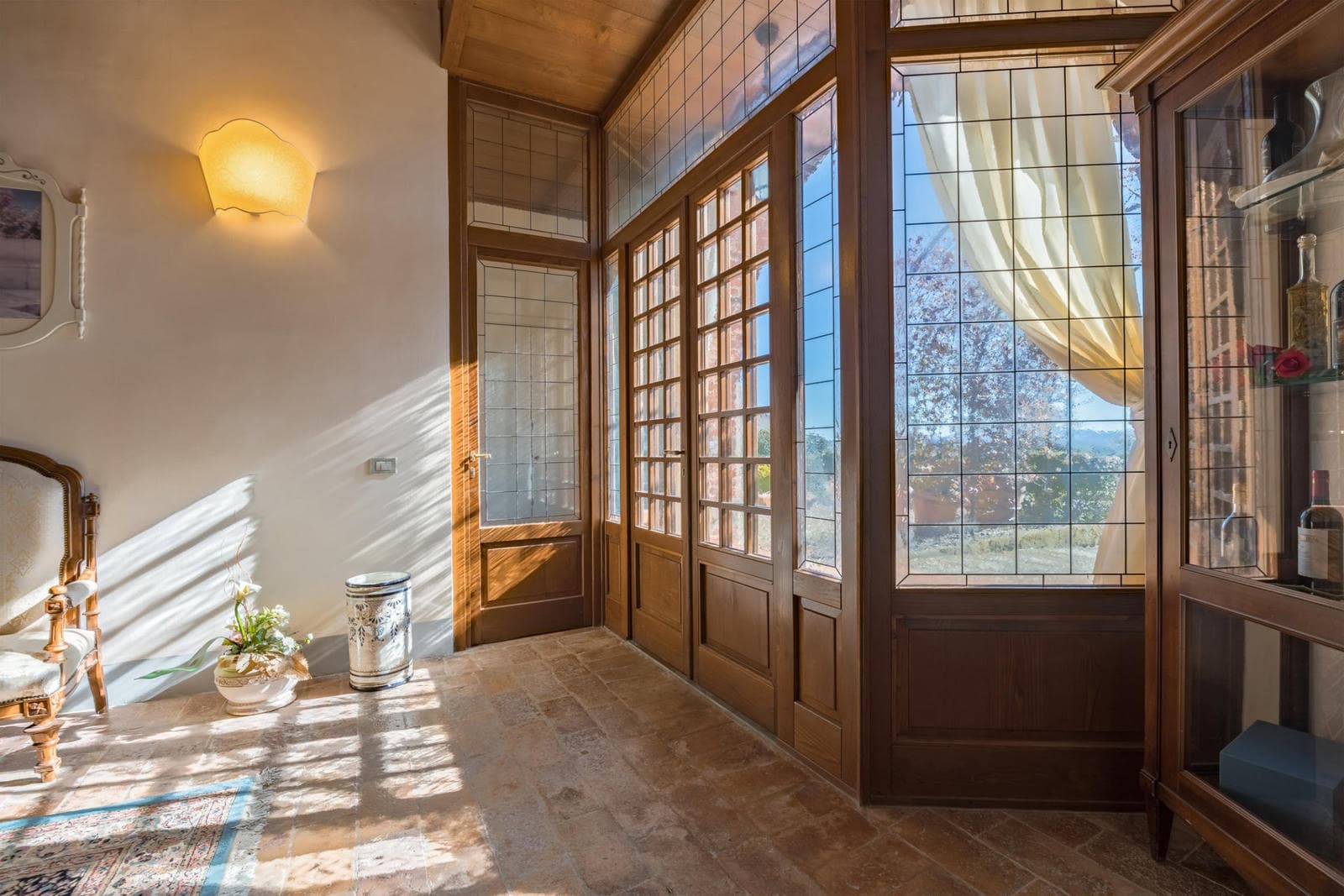 The interior decor showcases antique furniture and exquisite materials. The property has two swimming pools: an indoor pool equipped with heating, hydromassage, and a sauna, and an outdoor pool accessed via a Roman-style staircase. The outdoor pool is enclosed and surrounded by well-maintained gardens, providing a beautiful backdrop for relaxing in the shade of a gazebo. The villa also has a loggia equipped with sliding glass windows, allowing for the use of air conditioning during the warmest evenings.