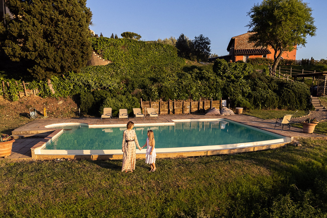 Colle di Sotto has a main villa and a cottage, each with its own pool. The villa is divided into two apartments, on the top and ground floor.