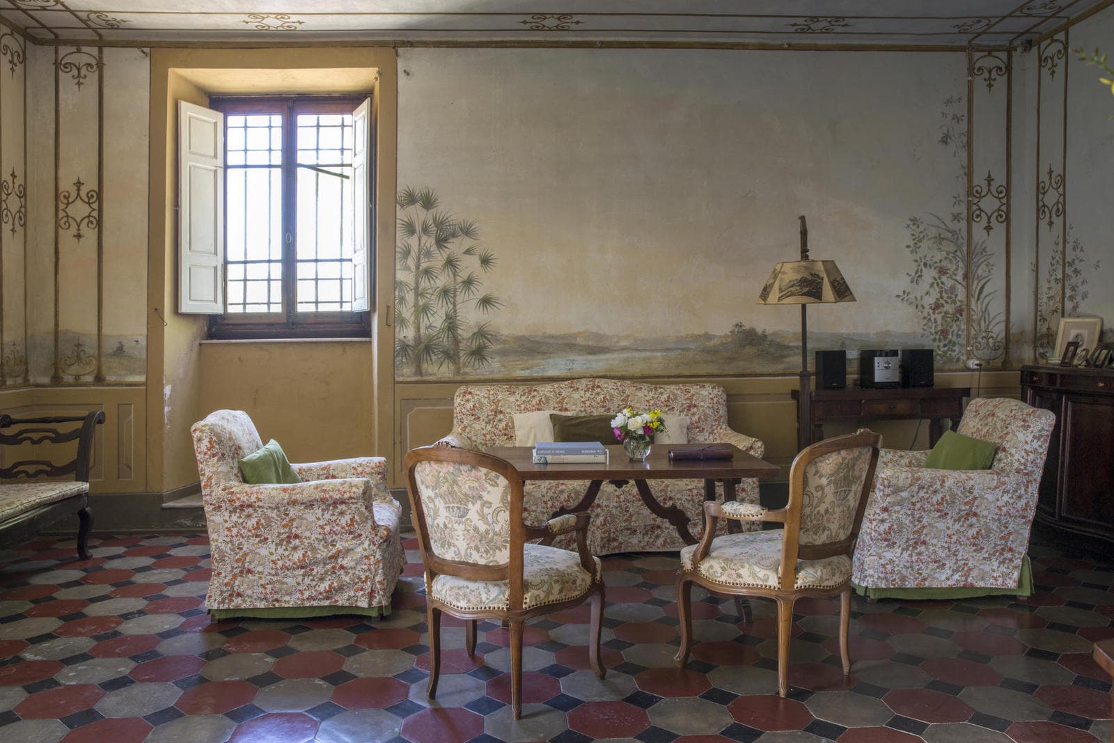 Villa Colombaia is a historic 17th-century hunting lodge near Florence, offering authentic Tuscan character for up to 14 guests. The villa provides 7 bedrooms (4 doubles, 3 twins) and 5 bathrooms across three elegant floors, with original frescoes, coffered ceilings and period features throughout.