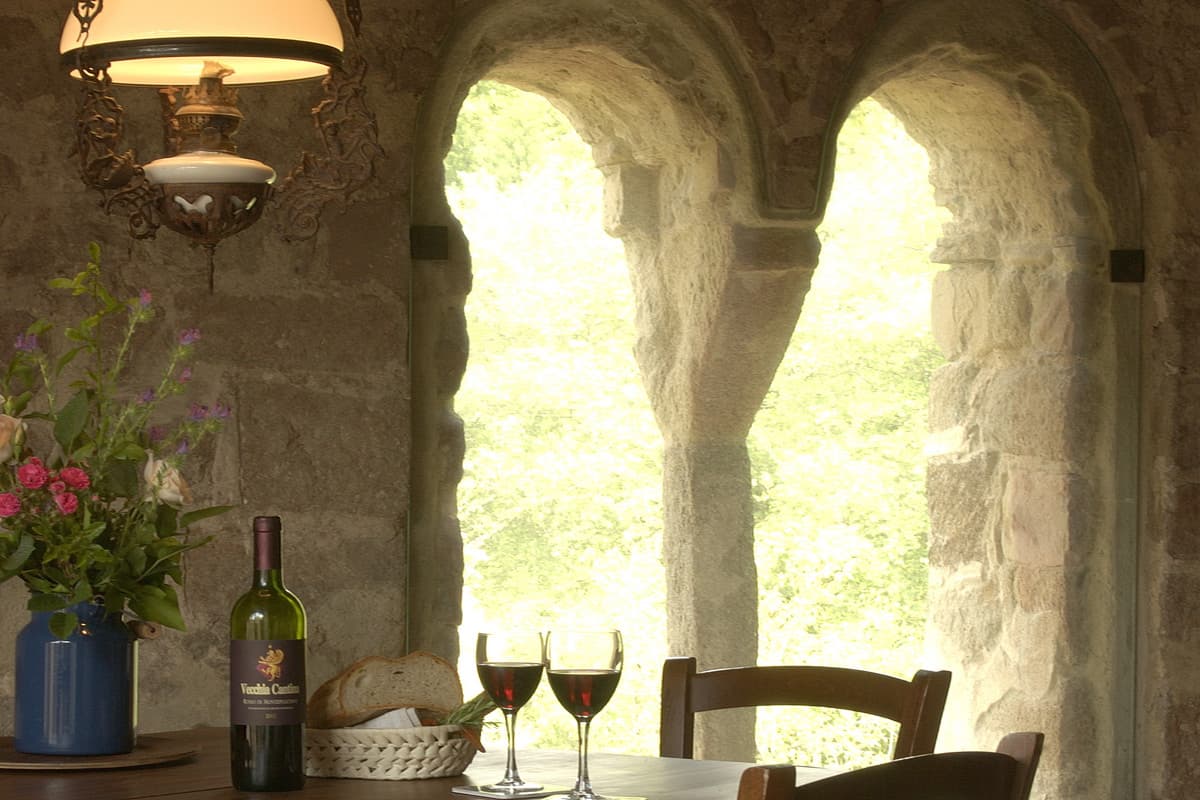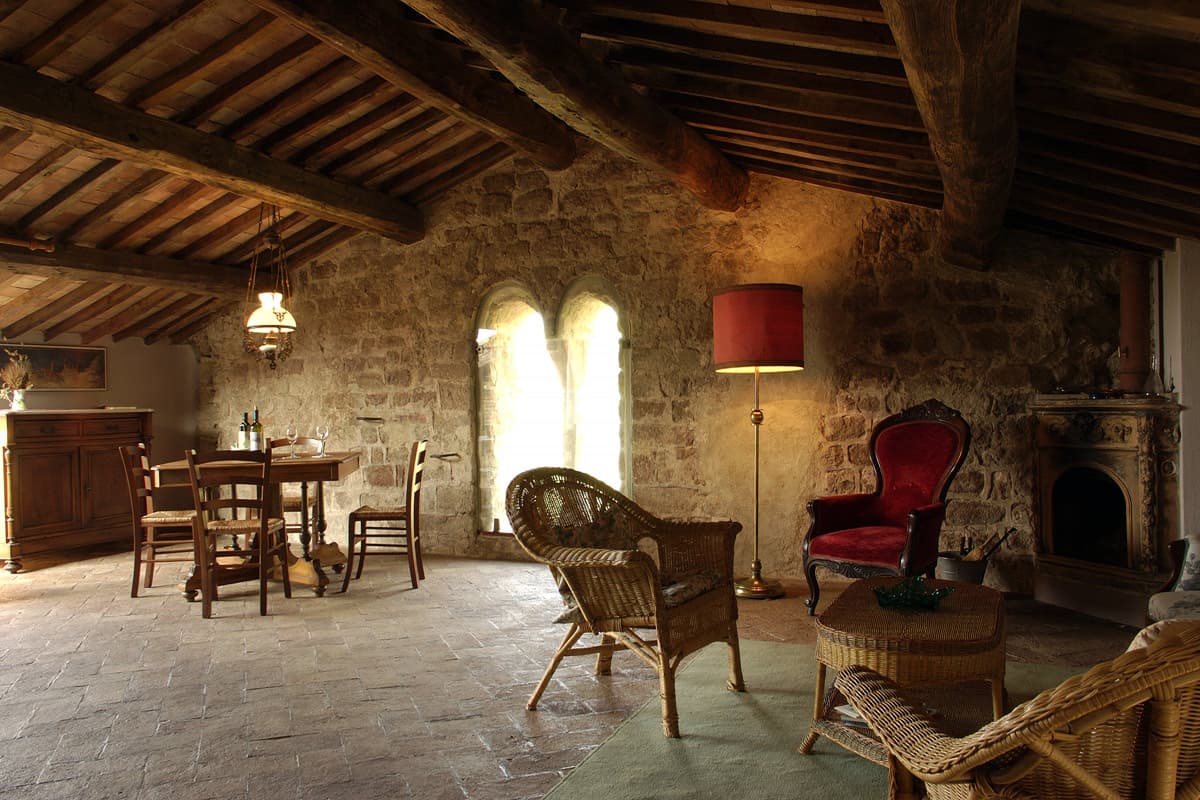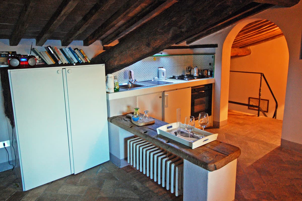La Bifora is a simple but charming apartment set within the medieval church that is the heart of this ancient place, and is tucked against the ancient church roof, giving you access to the views from the old "Bifora" window. The apartment has a sitting room with fireplace, a kitchen, a double bedroom, a shower room, and a furnished roof terrace with wonderful views.