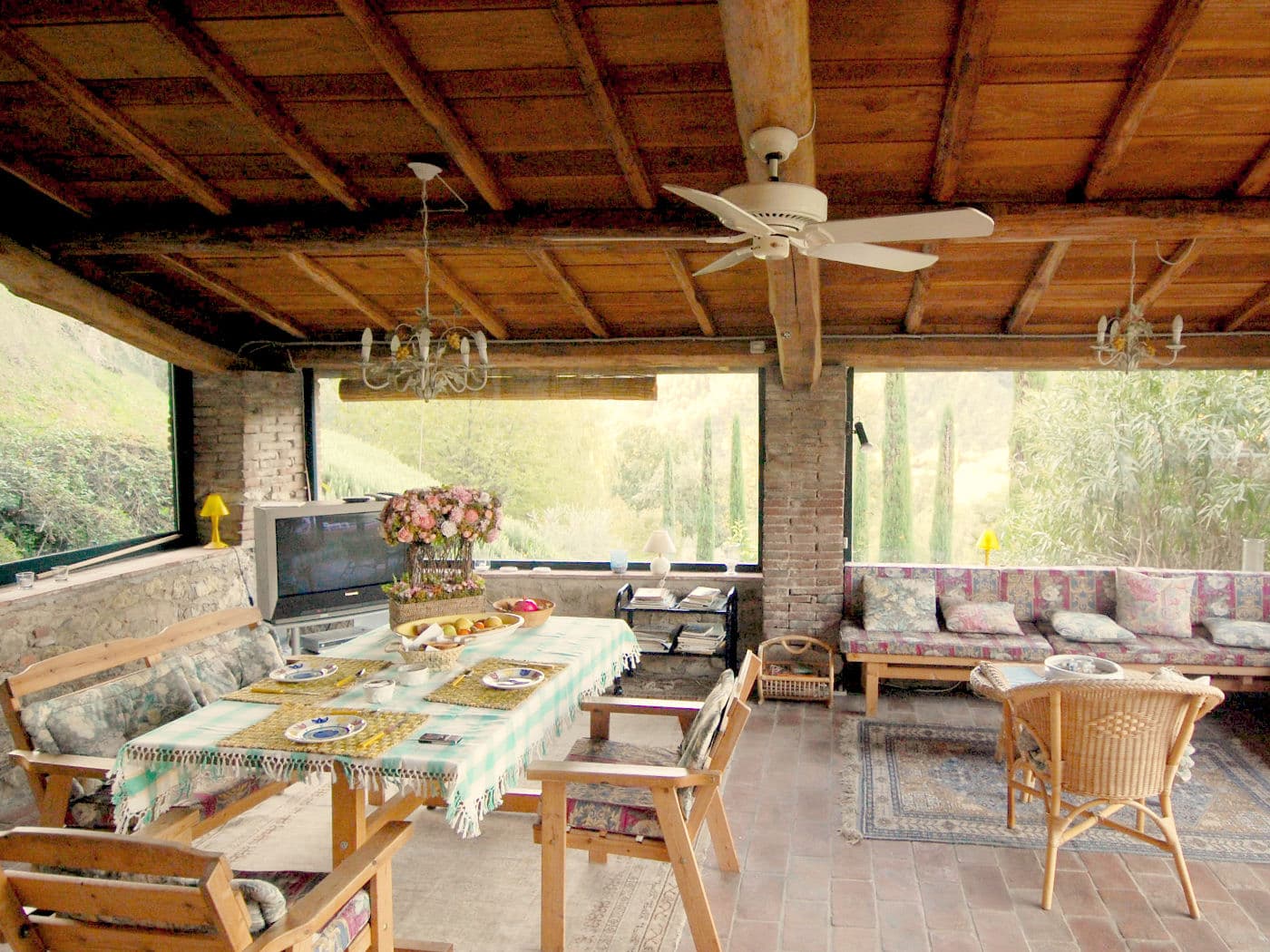 The views are wonderfully Tuscan: ancient farmhouses perch on hilltops and forested hillsides wrap around the valley. The Casina, together with the owners' main house, was built in 1600 and is set in ten acres of lush Tuscan countryside, originally part of an estate including a large villa, a chapel and a "grotto" with mosaics, of which some remains are still visible.