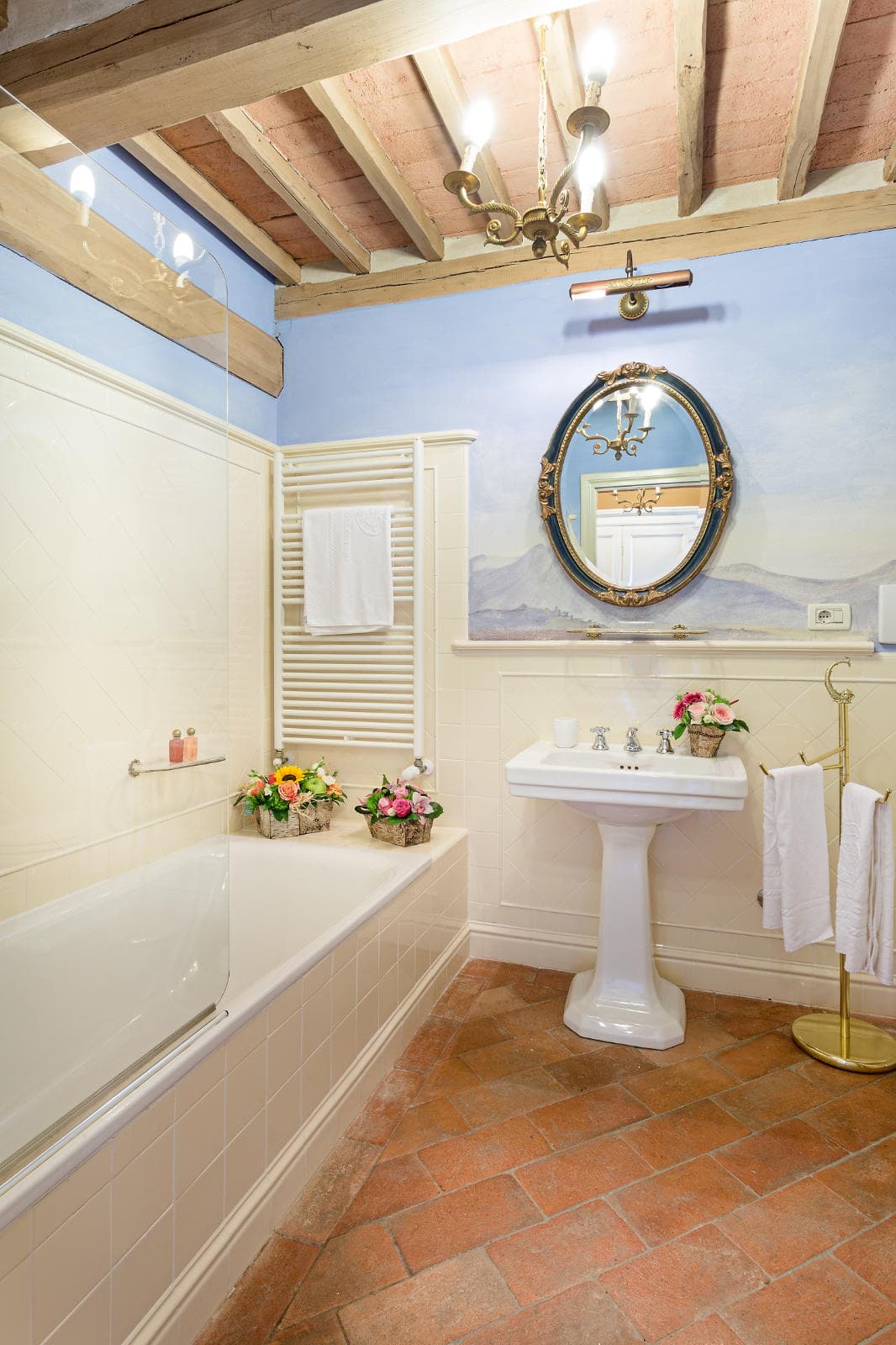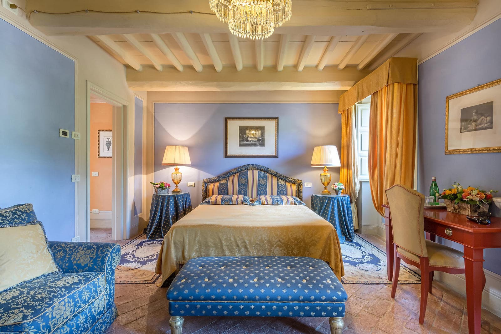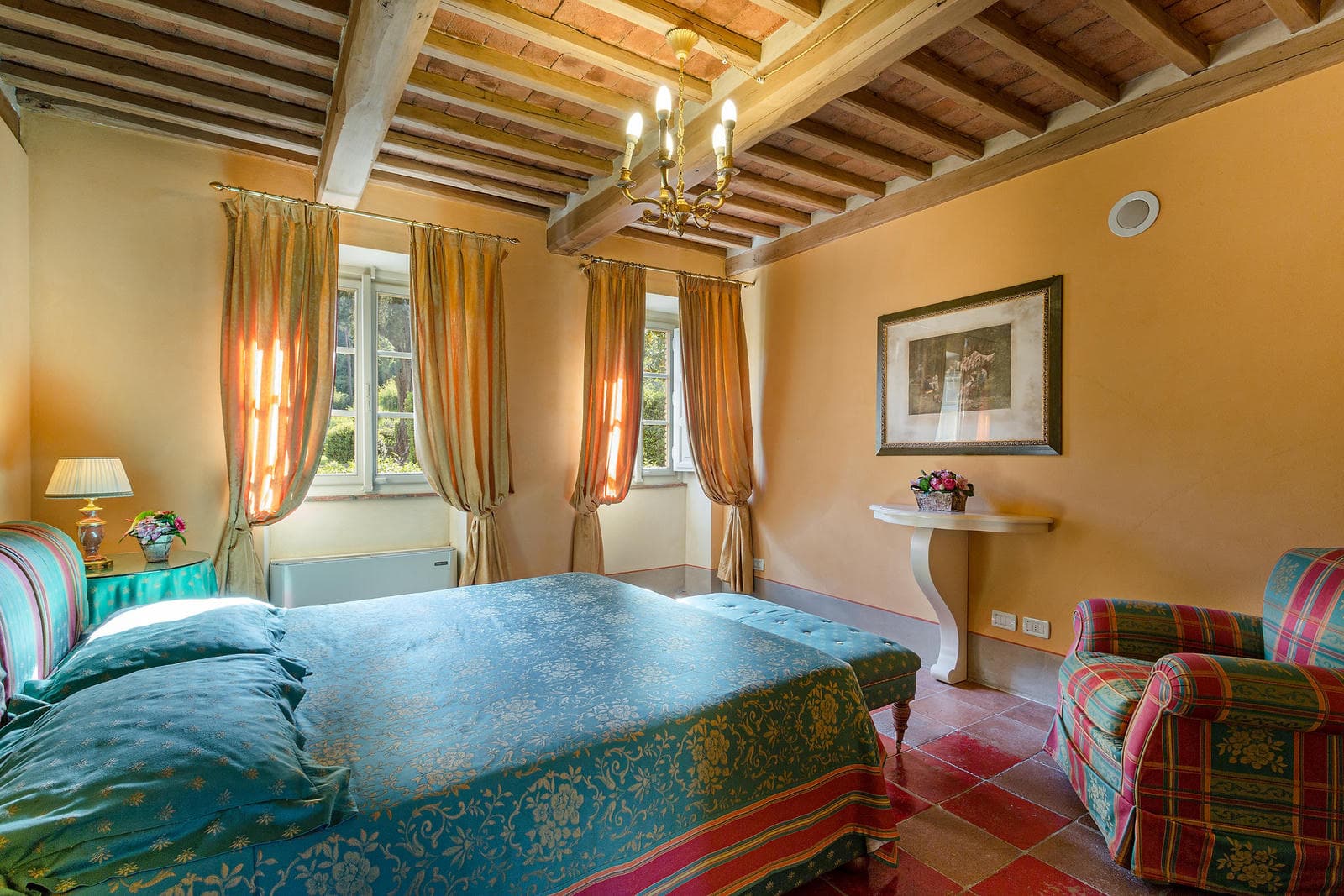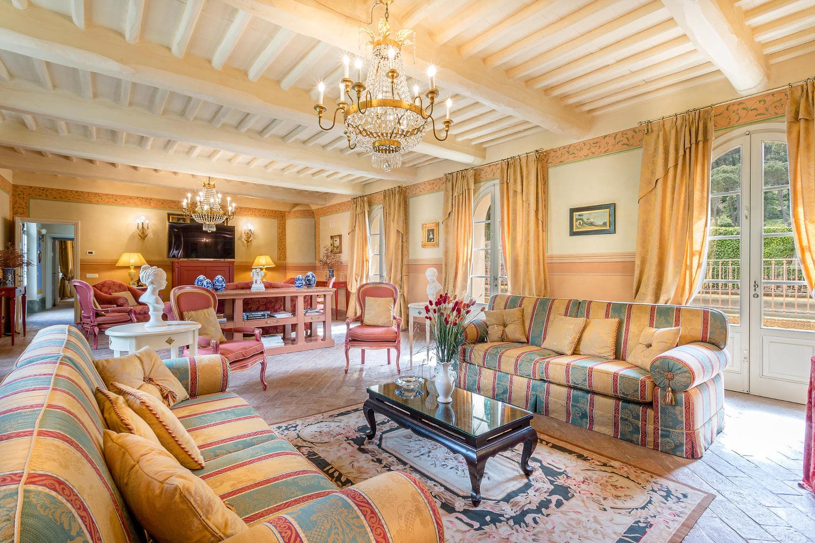 A luxury villa that preserved its tradition and history, Cosimo has 12 bedrooms with en-suite bathrooms and majestic living rooms featuring beamed ceilings, terracotta floors and ornate fireplaces, decorated with antique pieces of furniture that belonged to the Bernardini family.