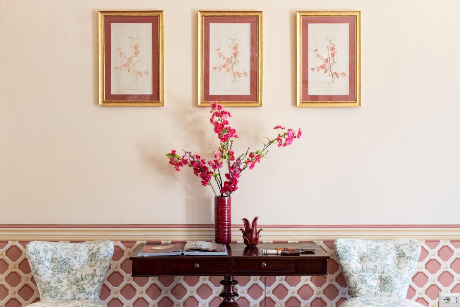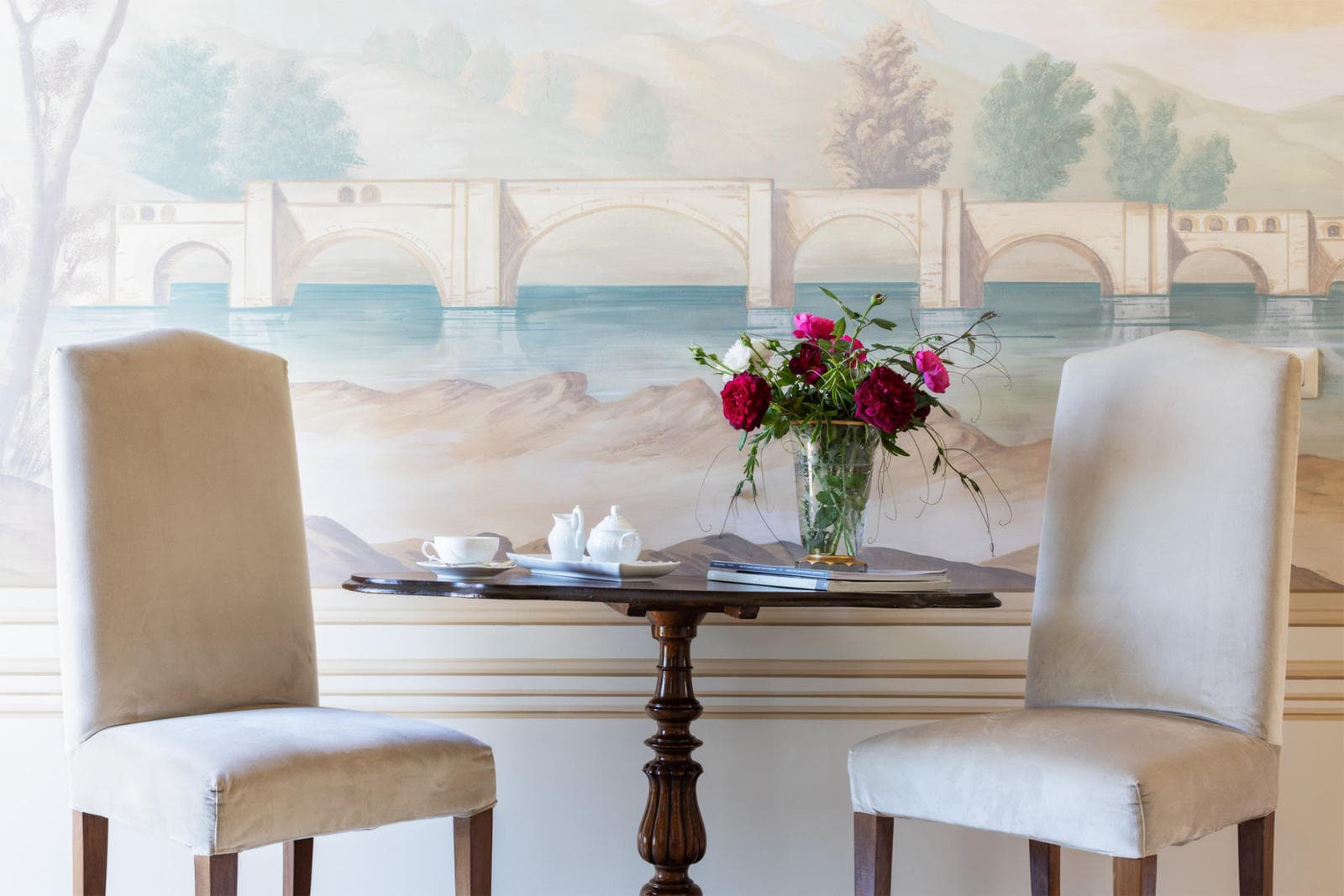 Indoors the care with which this historic building has been brought back to life is immediately apparent, with decorated floors of graniglia or handpainted tiles, wall paintings designed and executed by a local artisan, with a theme and a motif for each room, and enormously pleasing furniture built locally as designed by a Lucca architect. This is a home designed for the owners, with no expense spared and a light, joyful touch which makes it a pleasure to stay in; it certainly was a delight to visit.