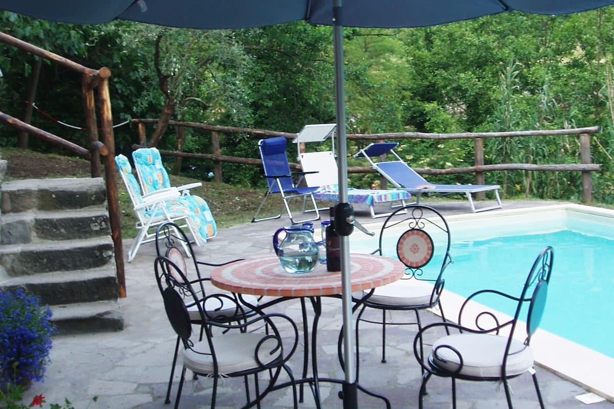 Close to the house, the swimming pool has both sun and a view of the village, while on a higher level there is a small patio, furnished for eating alfresco or relaxing with a good book.