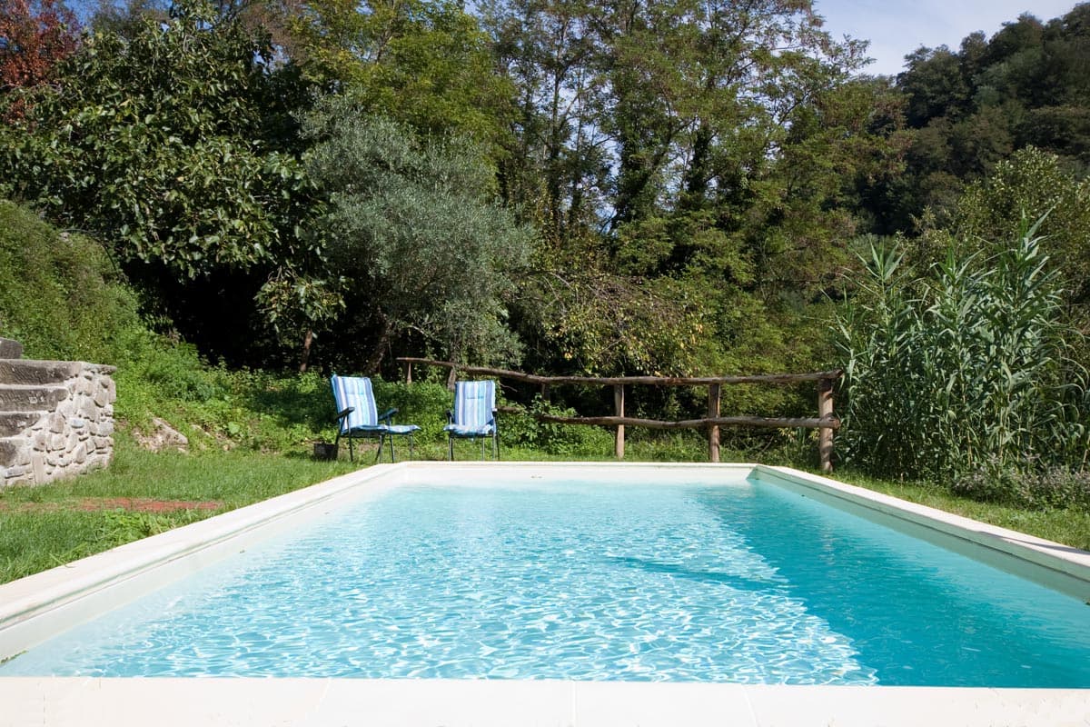 Reached by crossing an ancient stone bridge, known locally as the "Roman Bridge", this is a large stone house with a swimming pool beside, and just a short walk from nearby Fivizzano.