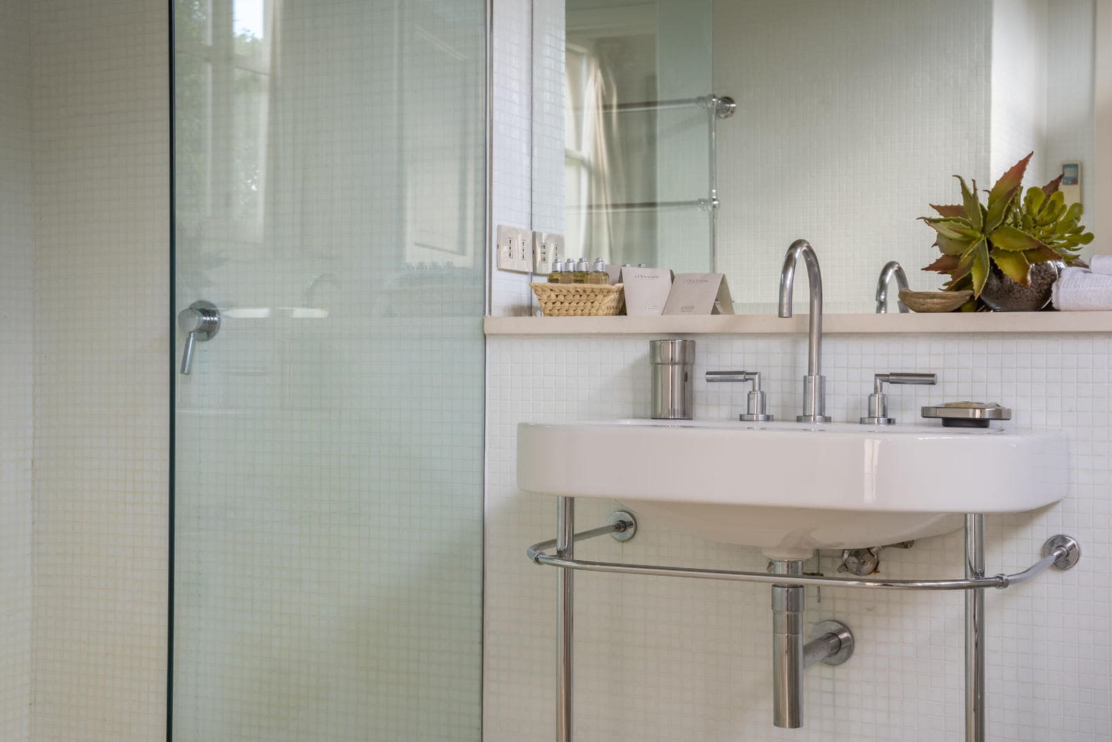 The remaining 6 bedrooms are upstairs: two en-suites doubles with king-sized beds, 2 single bedrooms which share a bathroom (shower only), and two doubles that share a bathroom. One of the doubles has a queen-sized bed, while the other has a king.