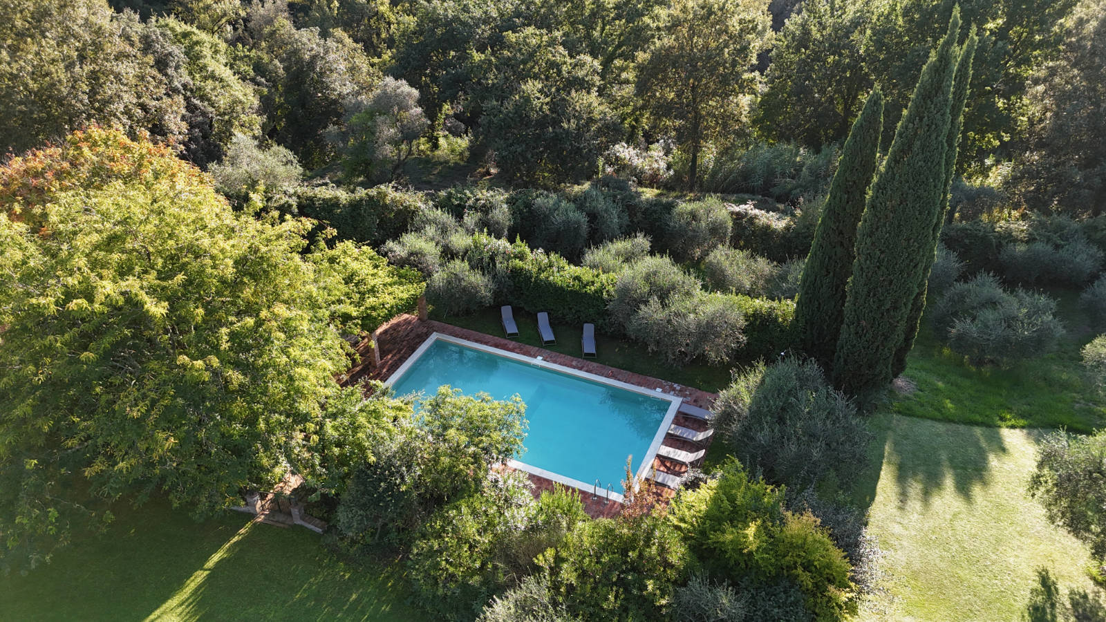 The villa sits just above a vineyard belonging to the estate, just south of its private pool.
