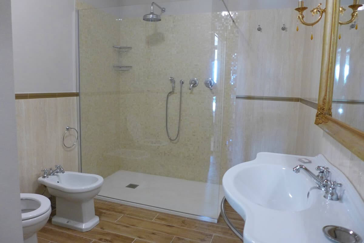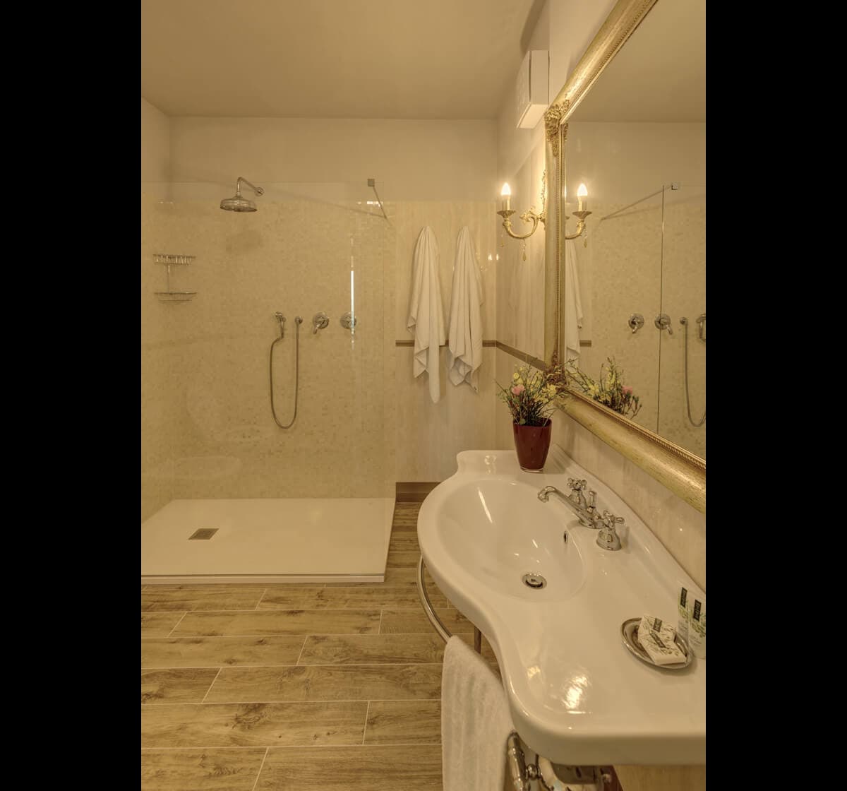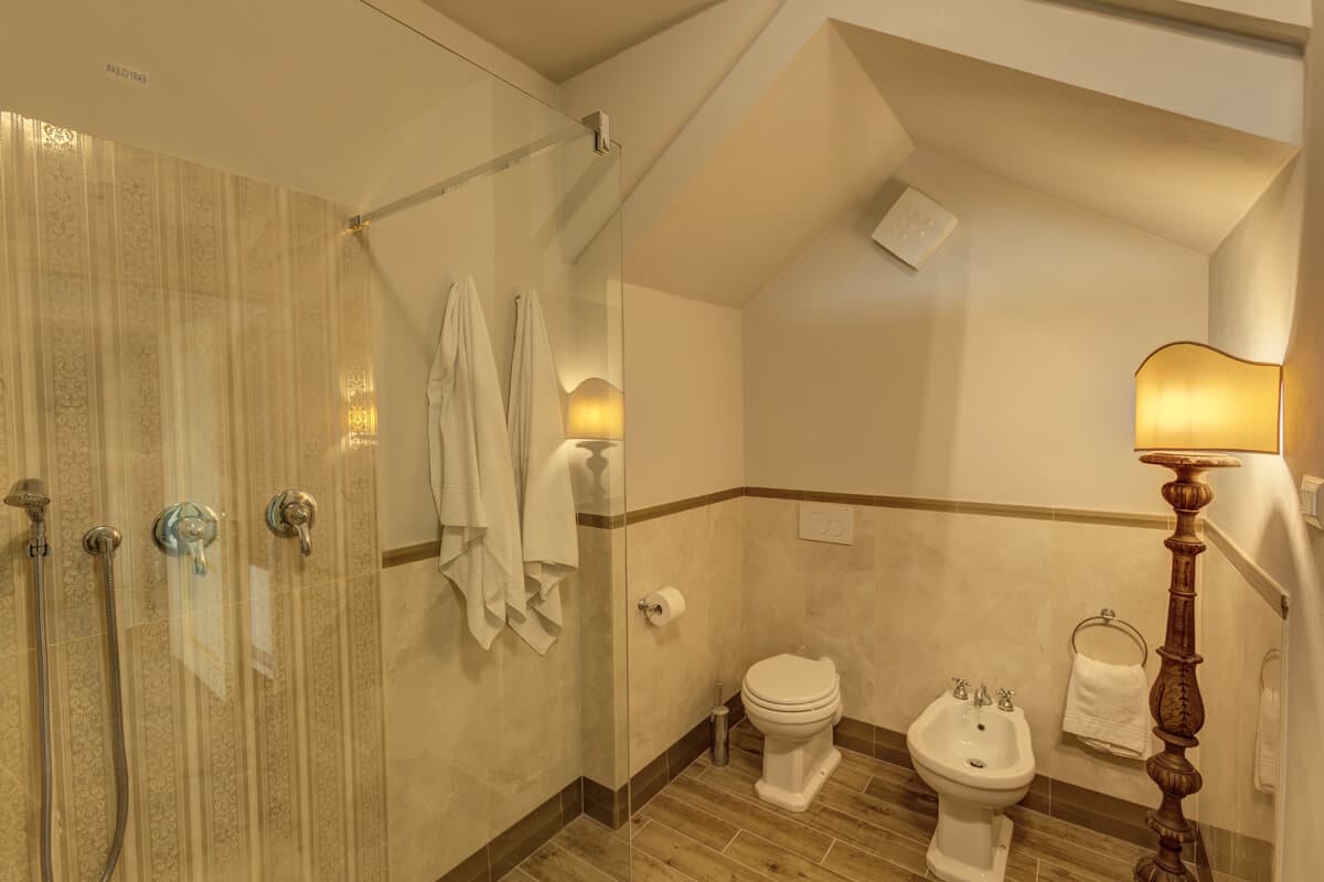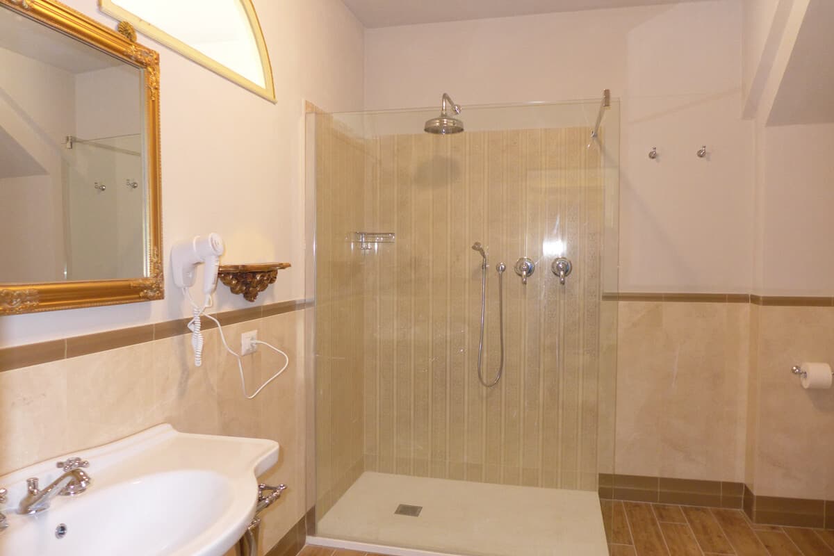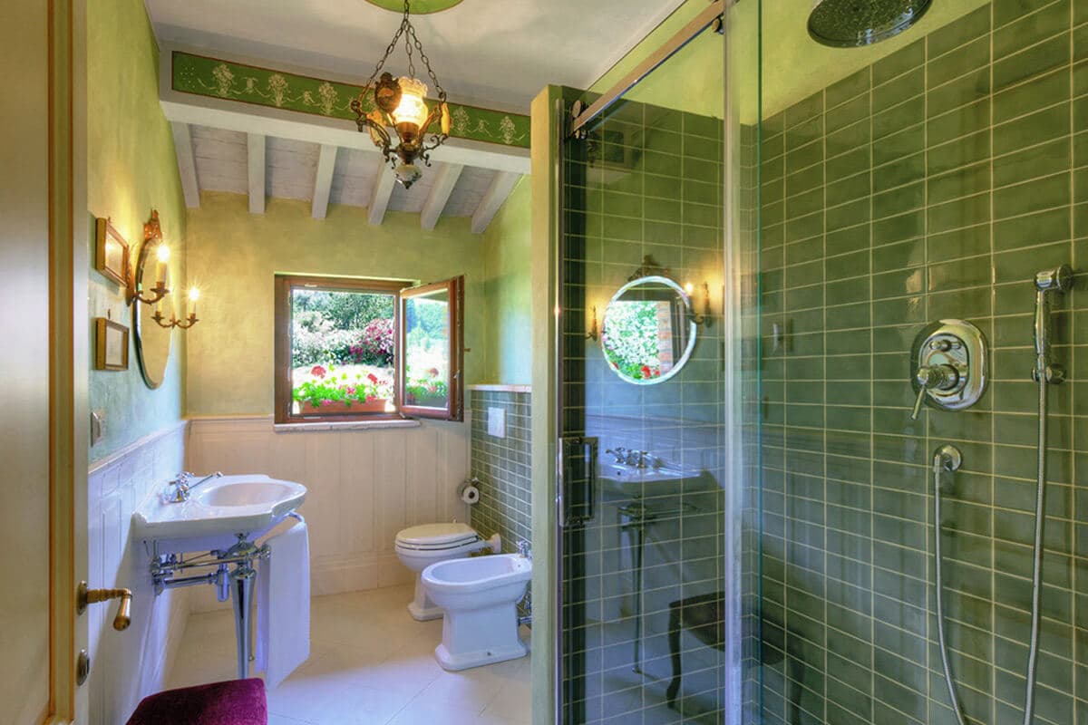 There are two twin bedrooms on the ground floor, which can be made up as double bedrooms on request; both have ensuite shower rooms and doors leading to the side garden. The upper floor is reached via pietra serena stone staircase from the living area. On this level there are two double bedrooms, each with ensuite shower room - one with a furnished balcony, the other connected by stairs to the rooftop terrace. Each bedroom and shower room is unique in its decor, but all share a sense of elegance, comfort and attention to detail that leaves one feeling pampered. Downstairs there are ow a further 2 large double bedrooms with en-suite shower rooms.