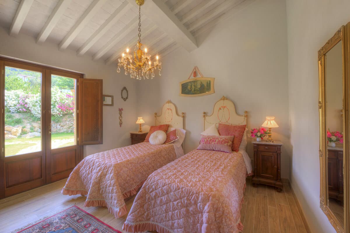 • One twin bedroom on the ground floor is suitable for disable guests, with doors wide enough for wheelchair access to main rooms, garden and swimming pool.