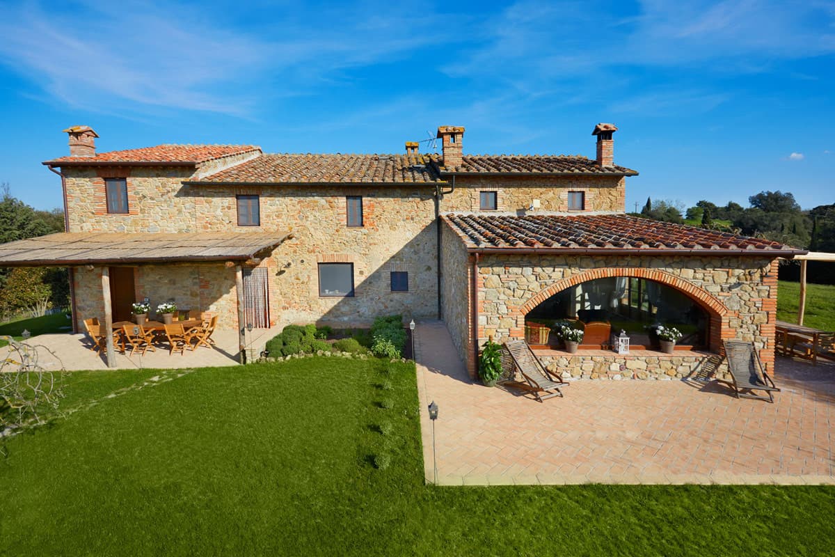 Set on a quiet hillside in the Tuscan countryside near Volterra, Villa Amorosa is a welcoming retreat made for families. The traditional stone farmhouse has been carefully restored to combine rustic charm with modern comfort, surrounded by open lawns and views that stretch across olive groves and rolling hills.