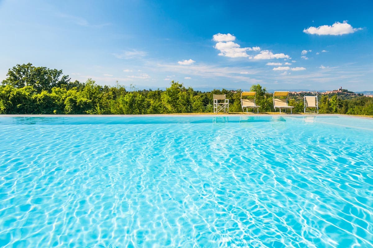 San Miniato, the medieval village seen from the shared swimming pool, is one of many sites that will draw guests seeking a Tuscan experience.