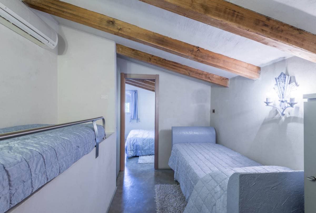 You enter into a living room, with exposed stairs leading up to the first floor and with two ensuite doubles to your right, both of which enjoy wonderful views. Beyond the living/dining room you will find a well-equipped kitchen with amenities such as a dishwasher, fridge, freezer, stove top, oven, Italian coffee machine, washing machine.