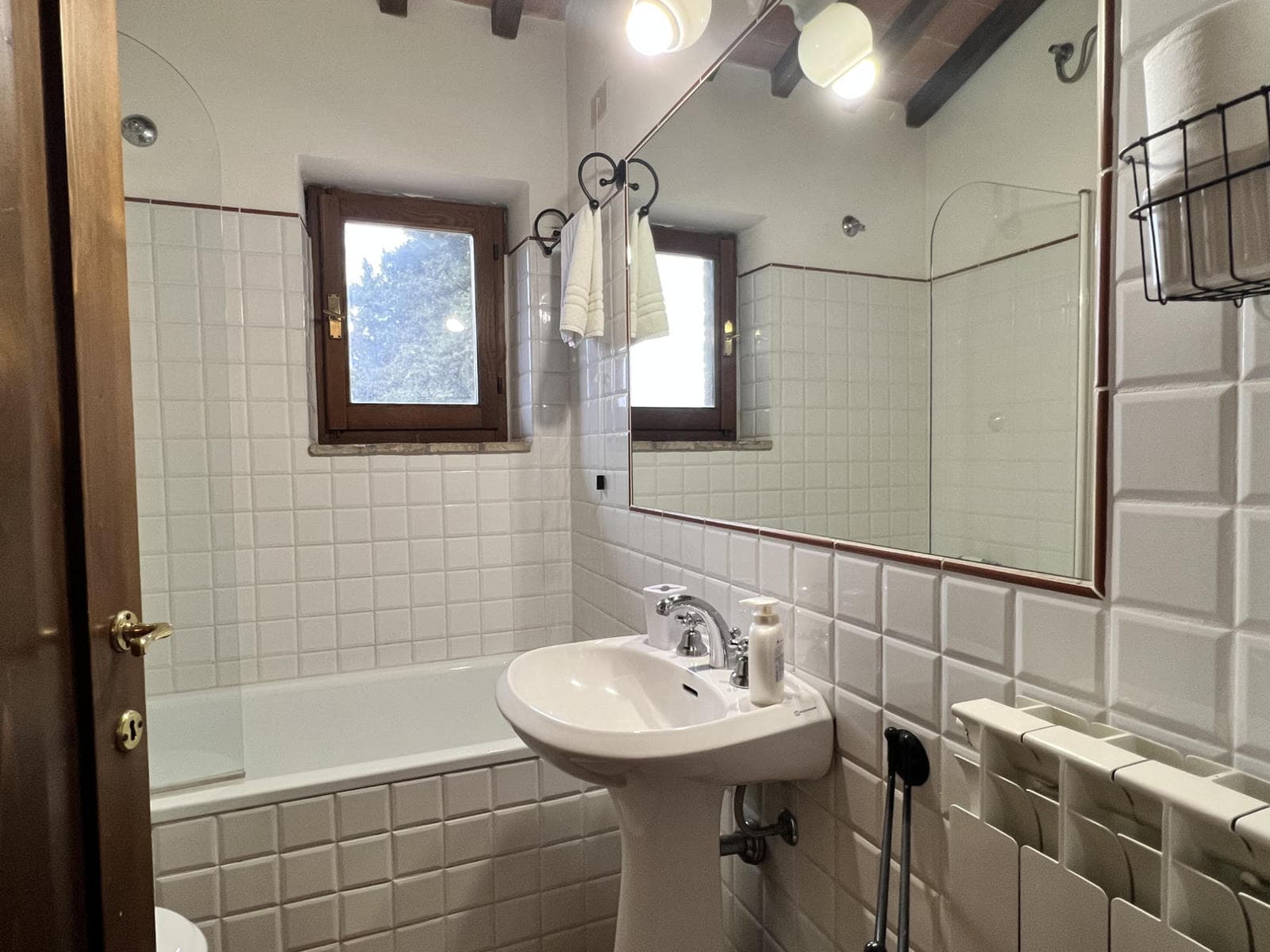 Canaiolo is a house for four on the edge of the old threshing floor, with a double and a twin bedroom and a large shared pool just a few steps away. Much of the furniture is antique, cleverly co-ordinated with good quality Tuscan furniture in excellent taste.