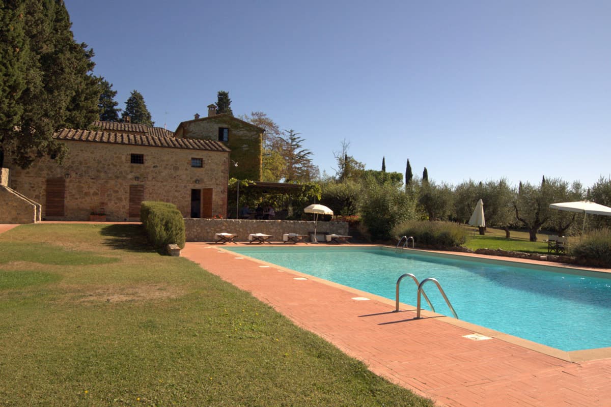 The large pool, about 50 metres beyond the houses, has a wide, furnished surround and shares in the beautiful views of the Chianti countryside, framed with flowers, herbs and shrubs attracting a myriad of butterflies.