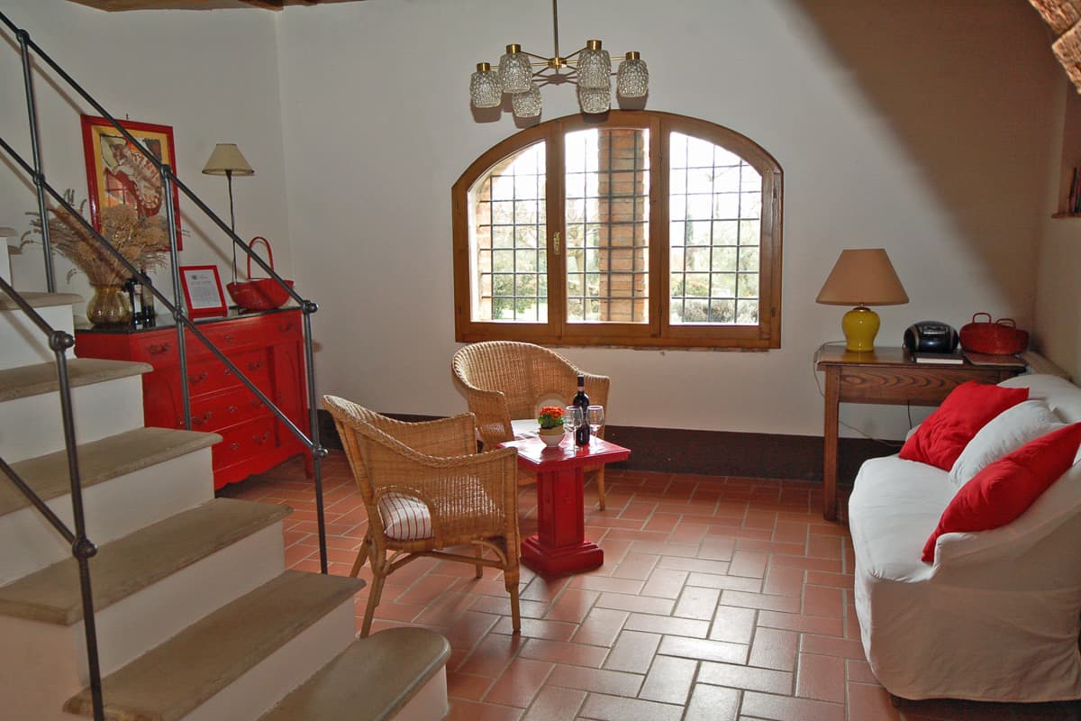 The owners at the villa have their own, private parts of the grounds and parklands, and may occasionally use the pool. Guests have their own parking space and entrance, separate from the owners' villa. While you enjoy your holiday, 100 meters away exquisite wines are slowly moving and maturing in oak casks in the ancient cellars below the villa, lovingly tended just as they have been for centuries past. A visit to the cellars is a wonderful way of cooling off, for the natural temperature there varies between 12 degrees in winter and 18 degrees in the high summer, all brought about by the construction of the ancient cellars themselves. Touring from Lornano is a constant delight along picturesque roads. These three houses are sufficiently private for separate renting, while if taken by a group, there is plenty of space for everyone to meet together.