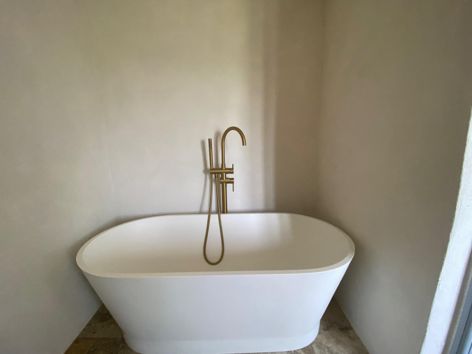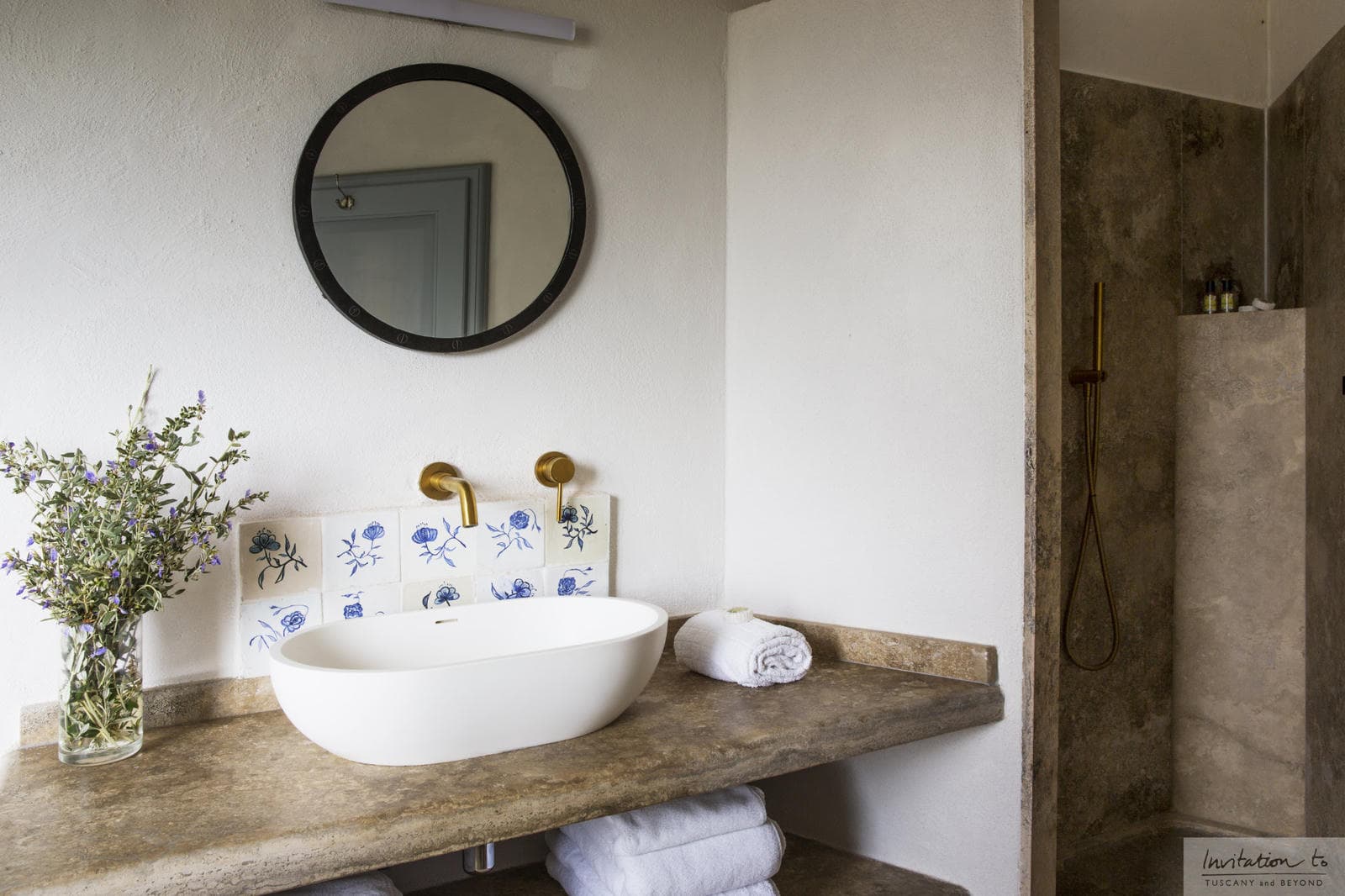 From a landing near the top of the stairs a glass door leads to the first of four bedroom suites, this one with twin beds under the eaves, the same view enjoyed from the pool and an ensuite shower room. A long hallway with arched brick ceiling leads to three further suites - two doubles and one twin/double bedroom, all with ensuite shower rooms. All the bedrooms are very spacious and furnished with country antiques suiting the style of the house.
