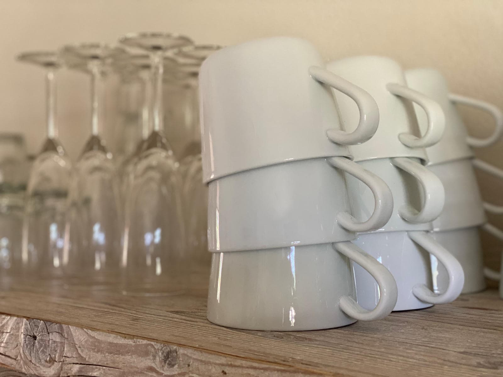 Casa del Pastore is on a ridge high above the Val d'Orcia valley. It's an old building so has very thick solid stone walls. We've found that between the high thermal mass of the walls, and keeping windows open at night (they all have insect screens) with the silent ceiling fans running, the house stays cool without air-conditioning, with the added kudos of being environmentally conscious.