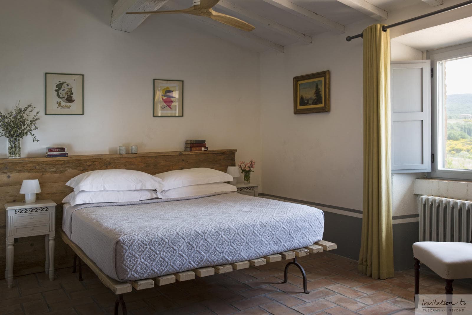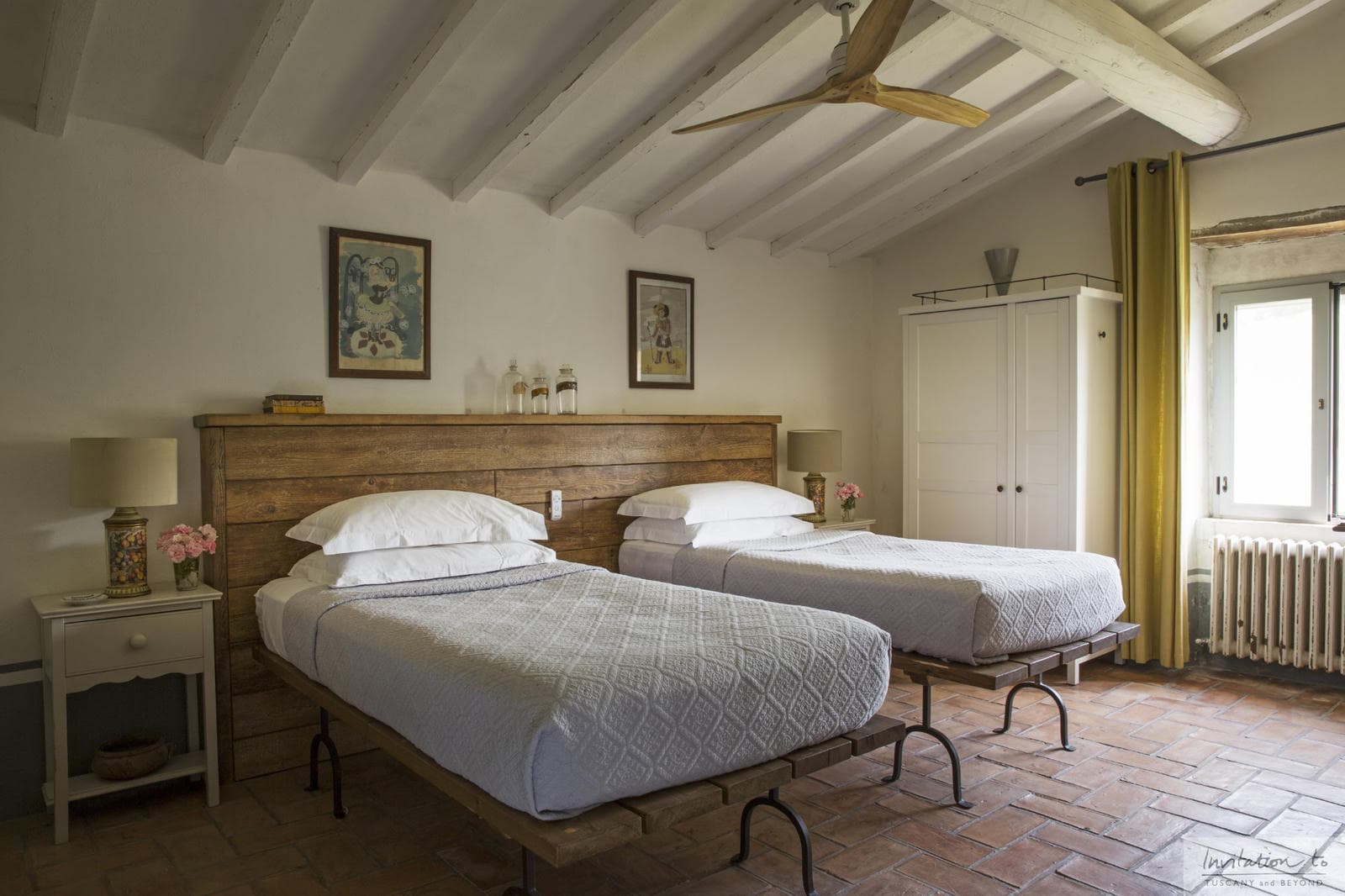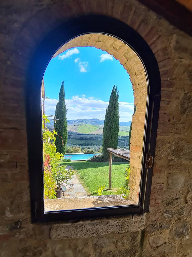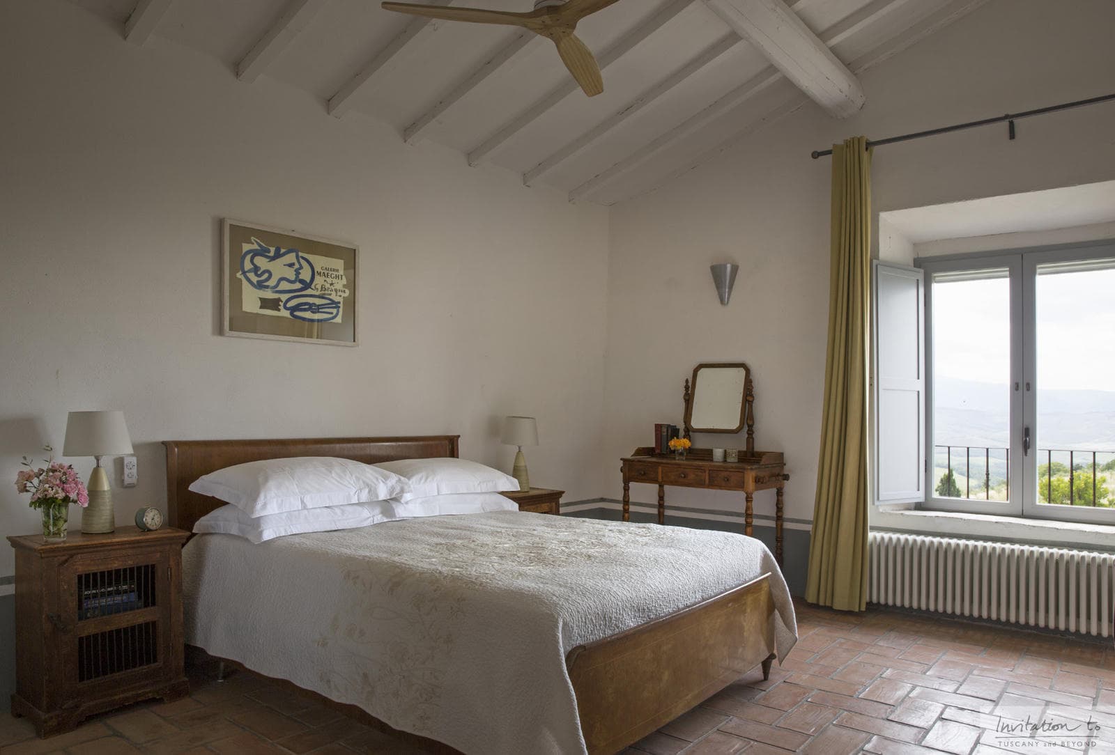 The house sits easily amongst the cultivated hills and towns perched on rocky outcrops which have been captured by artists since the Renaissance, surrounded by soul-renewing views. It was certainly not chance that brought the Sienese Pope Pius II to build his Ideal City of Pienza in this valley, though these days, the area is feted more perhaps for its Brunello wine and pecorino cheese for which the area is famous.