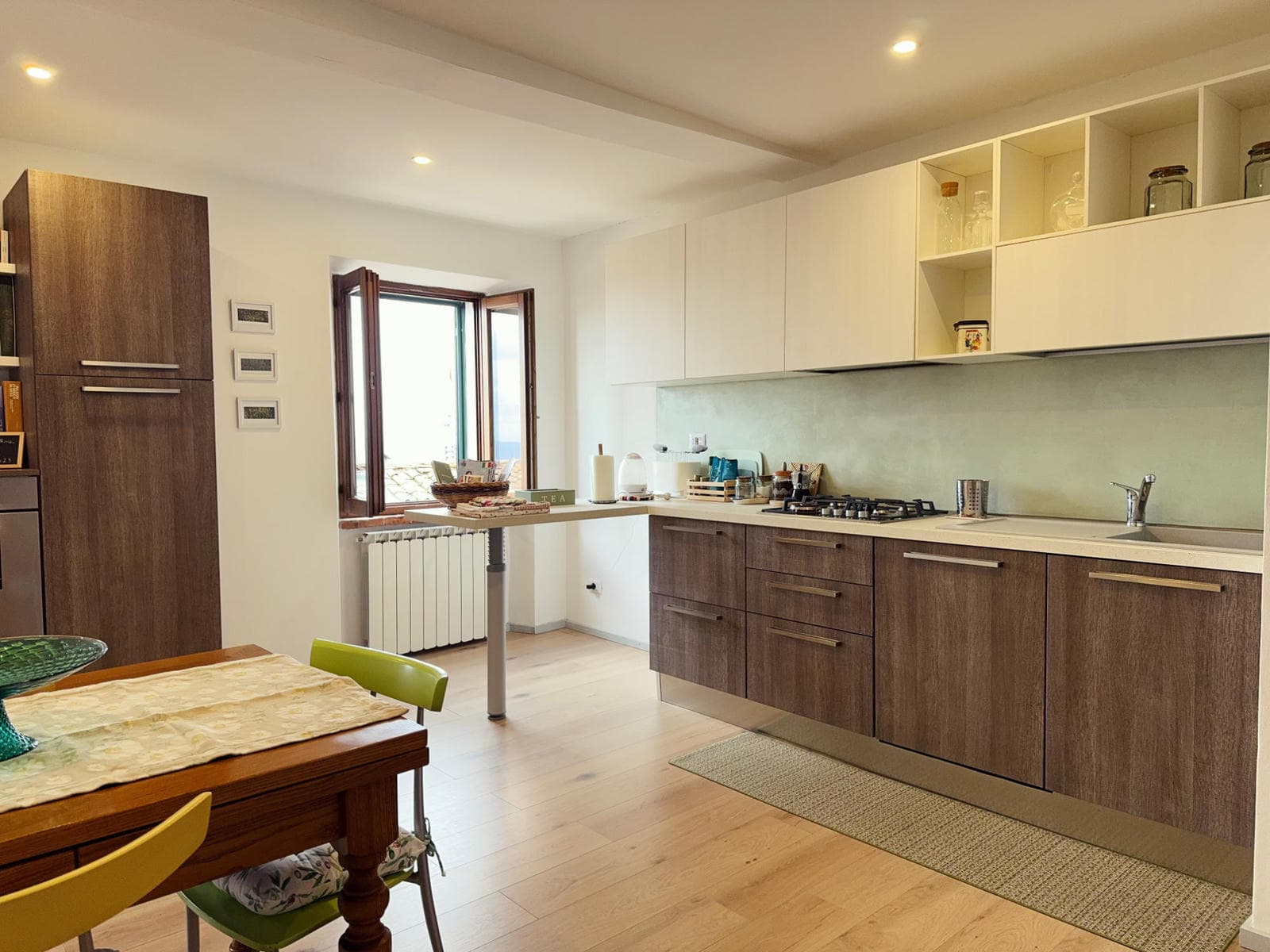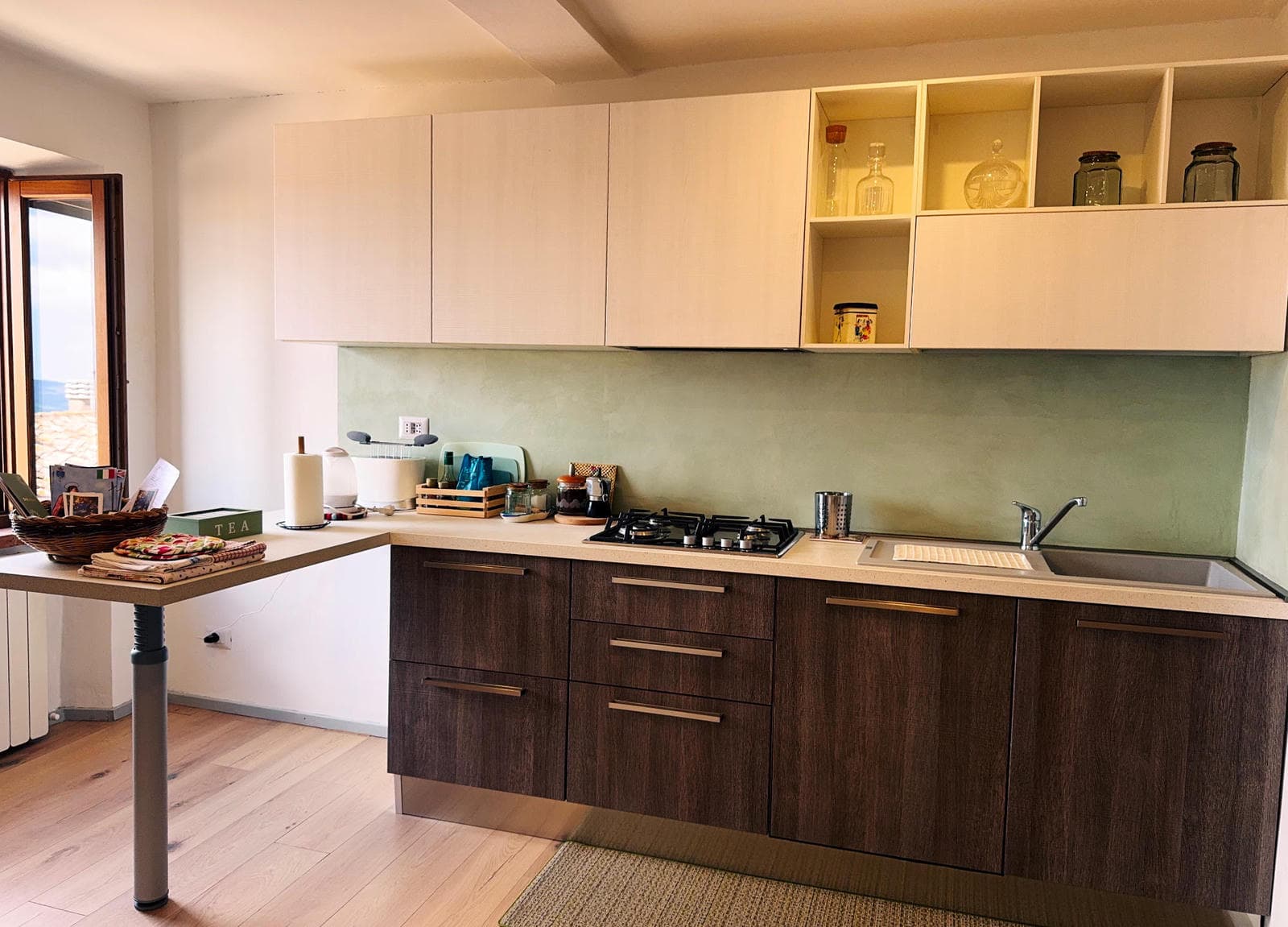 Casa Nonna Rina is in the village of Chiusdino, between the birthplace of San Galgano and the new museum about the saint. The house is entered up a half flight of stairs into a spacious living room, with the kitchen area at the rear. The windows on this side of the house have wonderful views over the rooves of the village across to the Abbey of San Galgano in the distance.