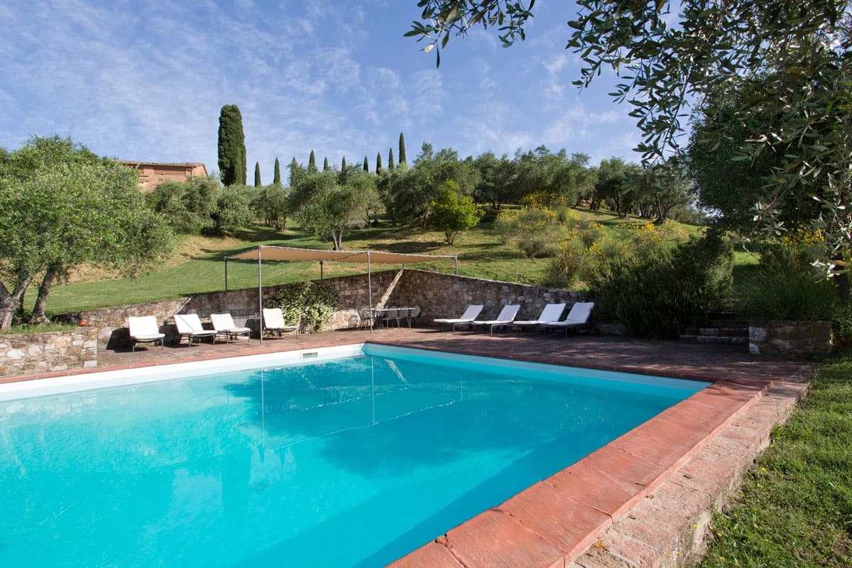 Surrounded by olive groves and cypress lined roads this is an archetypal Tuscan experience - even the swimming pool is reached by walking down a pathway through an olive grove.