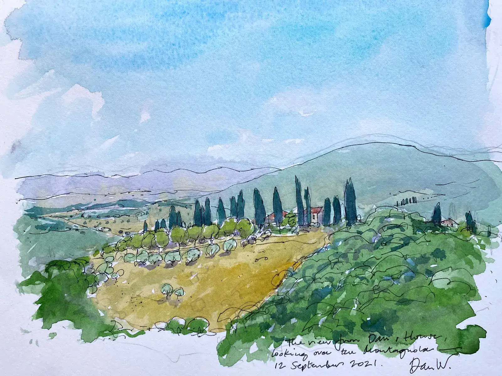 This a painting of the Chianti hills from Dan's house, by Dan on his last visit to the house in September 2021