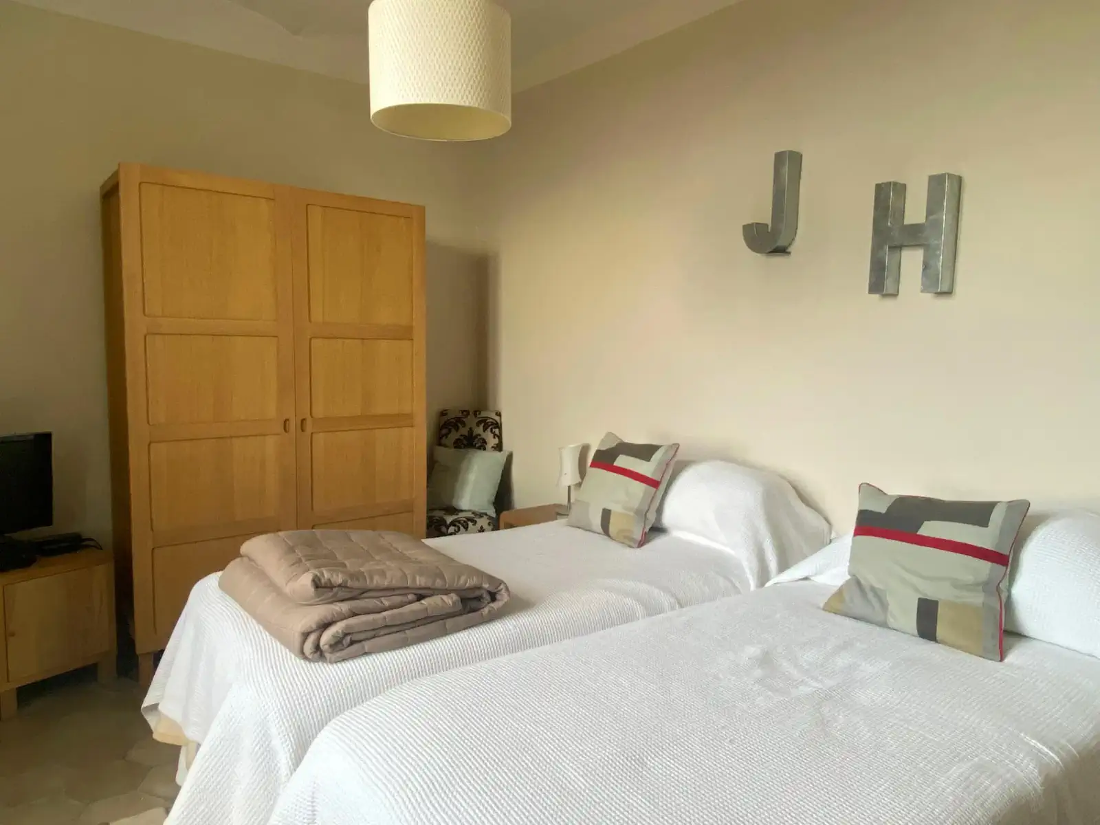The second bedroom has twin beds, though these can be joined together.