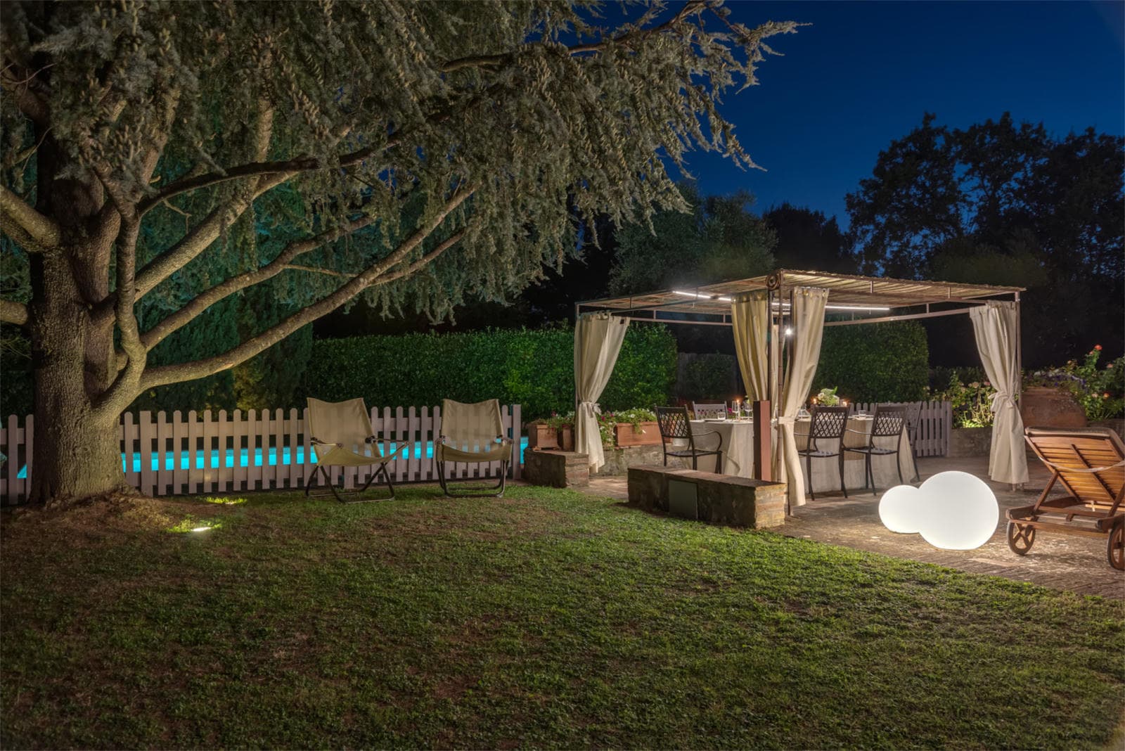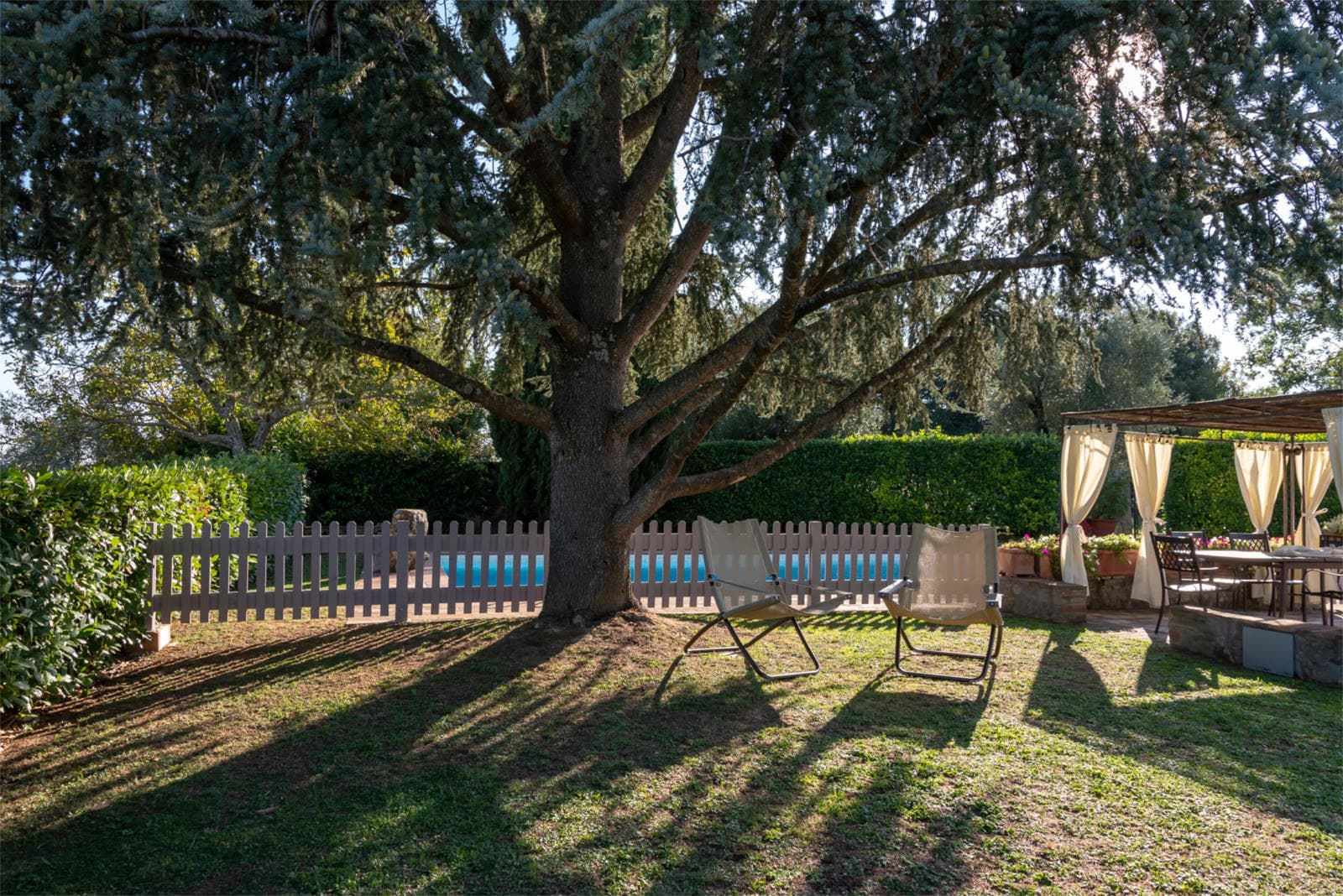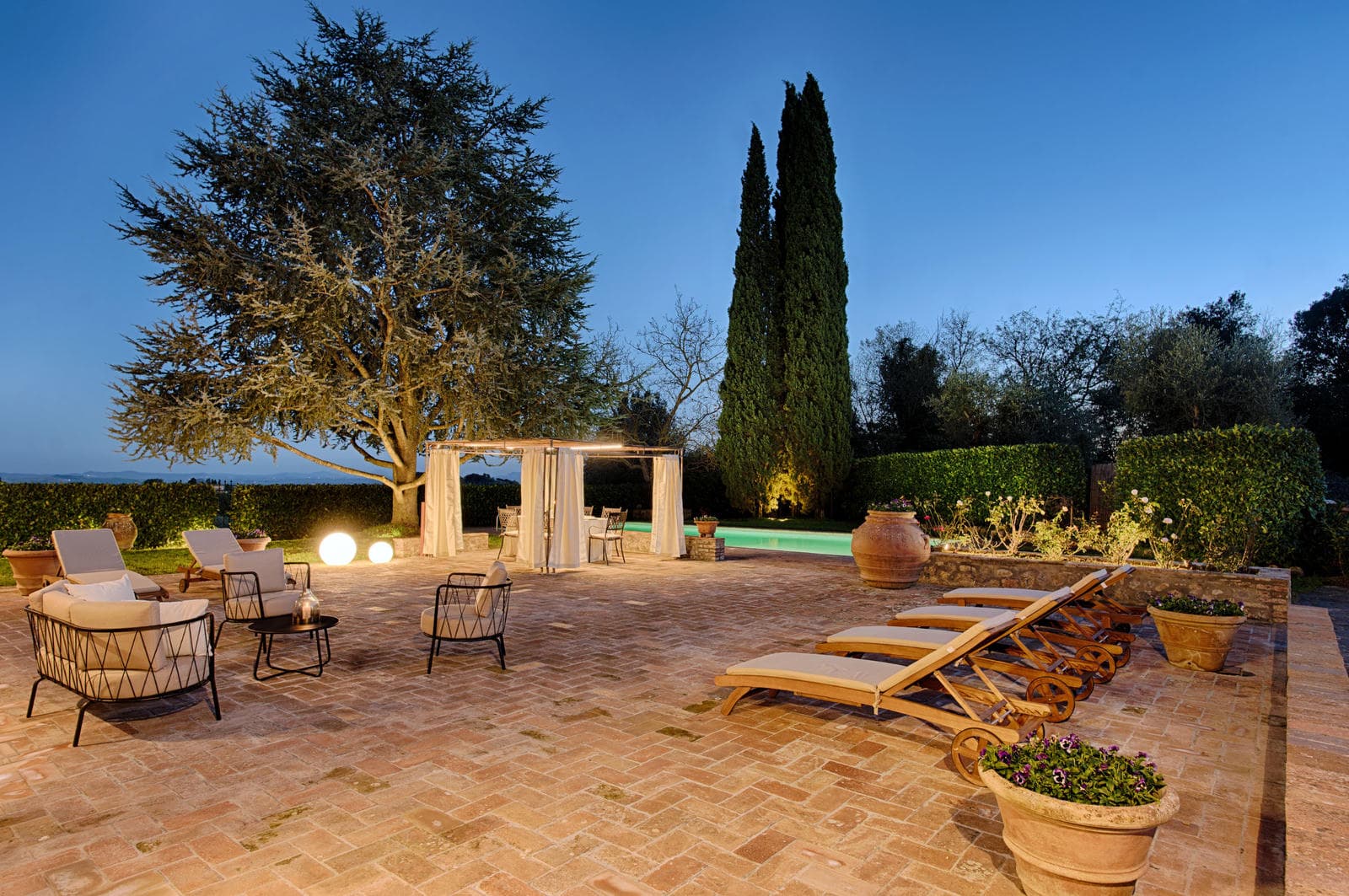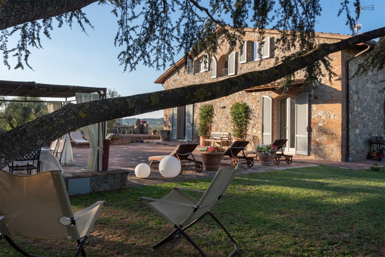 When you step out to enjoy the Tuscan sun you will find ample space for activity or relaxation. In the well-tended grounds, there is a terracotta solarium with views of the Chianti countryside and the spacious terrace with sun-beds and a furnished gazebo that overlooks the pool. Outdoor lighting around the property and in the pool mean you can linger over al fresco dinners and continue to splash until you tire; the pool is safely fenced but, should you prefer, the fence can be removed to give more space around the pool. Just below the house is a home spa, with jacuzzi, sauna and cascading shower that all guarantee you arrive at the end of the day relaxed. And just to make sure, on request, the owner can organize a professional massage on-site.