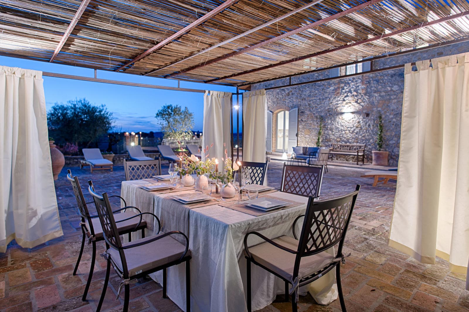 Fienile had wonderful indoor and outdoor space and was very comfortable for our group of 8. We loved dining outside at night under the canopy next to the pool while sharing our experiences and tasting our newly found Tuscany regional wines. Also, the terrace and garden views were so beautiful and relaxing...we often enjoyed our morning coffee there. The villa kitchen is very well equipped with plenty of glasses, dishes, pots and pans. We enjoy cooking, so we prepared several meals in the kitchen there. Two nights we arranged to have dinner catered...one was a drop-off and the other was an in-house cooking class. We enjoyed a full day private wine tour to Montalcino and another day trip to Antinori Winery. We also spent a few relaxing hours one day at the thermal springs (not sure of name). Of course, Siena itself had so much to offer in the way of shops, restaurants, and beautiful churches and museums. Our favorite restaurant in Siena was Trattoria Papei. On other days, we just drove and discovered small villages with very quaint restaurants for lunch and just enjoyed sitting and "soaking in" the atmosphere. We would definitely recommend Fienile to family and friends and would love to return with our family in a few years. Thanks for your help and information to make this a beautiful and memorable trip.