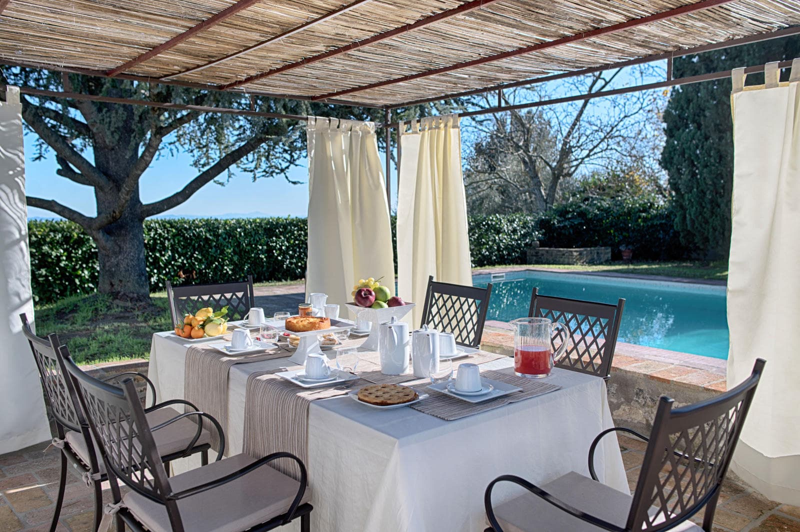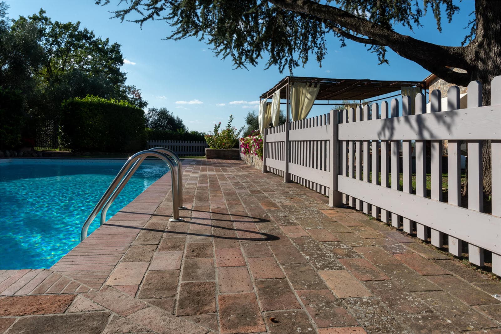 The furnished poolside terrace stretches the width of the house, with extensive views on all sides. Il Fienile is the perfect house for family reunions, equipped with all the elements that ensure a relaxed comfortable holiday with space enough for everyone. The pool is fenced making sure everybody can relax while the children run around and enjoy themselves.