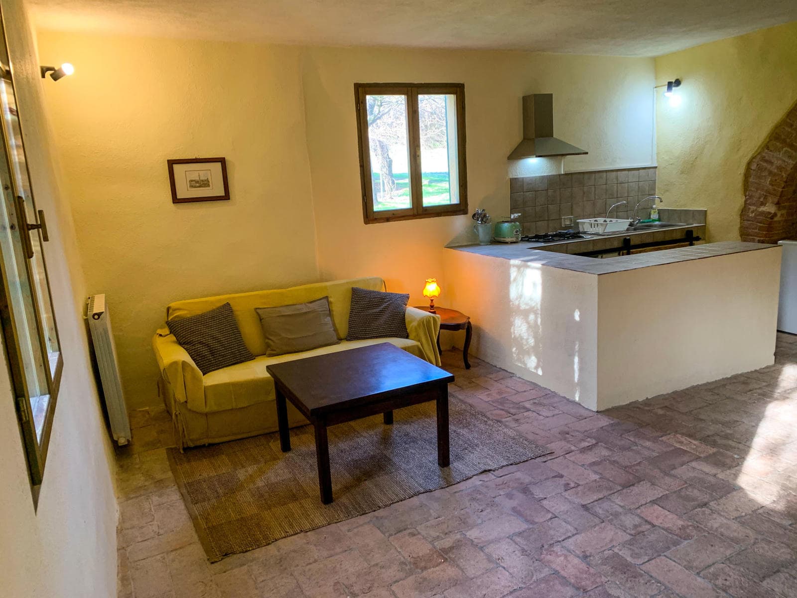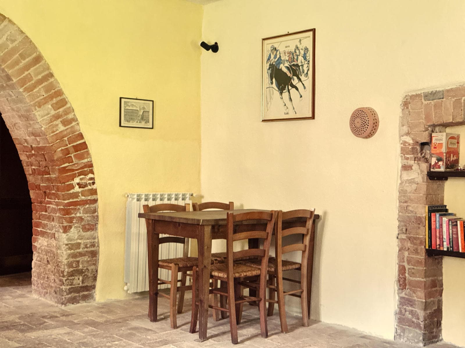 Il Nido is an apartment for two in an ancient Tuscan farmhouse: Campalfi. Set back from the river Merse by about 200 metres, Campalfi is a group of ancient farm buildings that once had all the necessities for the self-contained life of a small community. It has been converted to provide seven spacious dwellings. There is a central open-sided courtyard entered through an archway, around which are arranged the apartments, and to one side of this is a large dining-room where wonderful meals are often served.
