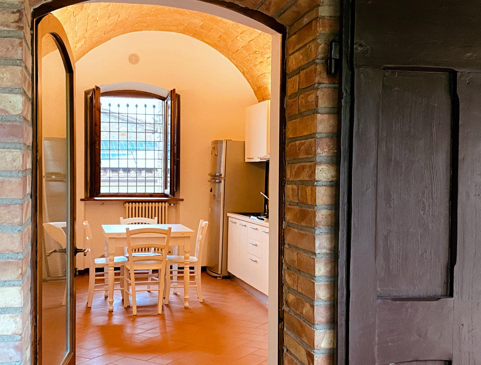 Mandorlo is the latest apartment to be converted in this Tuscan farm. It has a kitchen with a beautiful terracotta barrel vault, a double bedroom and ensuite shower room, and a lounge that can become a second bedroom but only if the guests don't mind crossing the main bedroom - it would suit a family, for example. The village of Casole is within walking distance, you will have a shared swimming pool at the bottom of the garden, and the house is well placed to explore central Tuscany, Siena, Chianti, Monterriggioni and more.