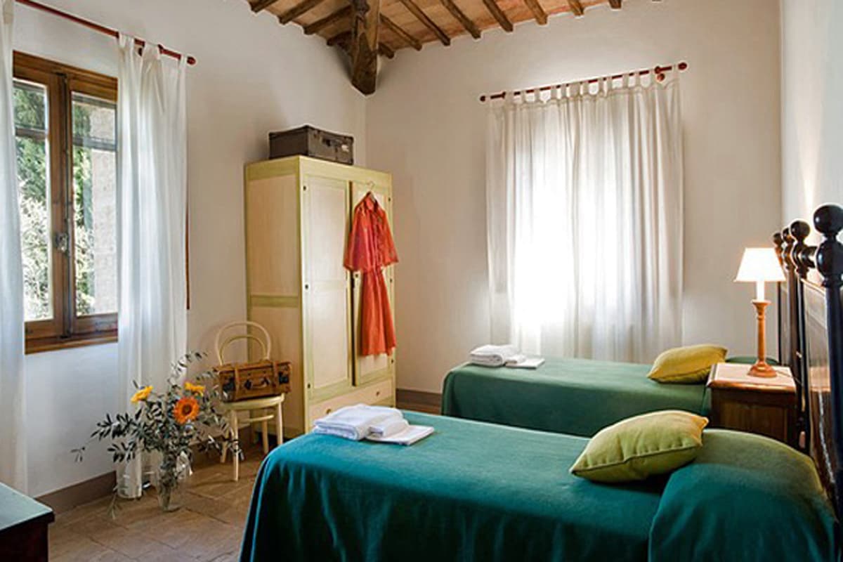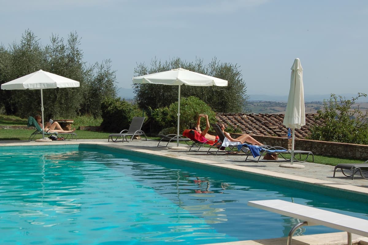 Guests on the estate share two swimming pools, one reserved for those who want peace and quiet, the other, further from the houses, for allowing free rein to summer holiday fun. Guests at all the properties may wander at will all over the estate. Part of the lands front the River Merse, which has excellent swimming and is protected for bathers by the Sienese authorities. The tiny village of Torri, with its famous monastery and striped cloisters is two minutes away by car, while there are pizzerie and restaurants within a few minutes' drive. A very important extra here is provided by the charming owners who will unobtrusively keep out of your way or happily go out of their way to help you, providing endless extra services if you require them, from sending faxes, arranging balloon trips, providing touring information, to translating at the doctor's.