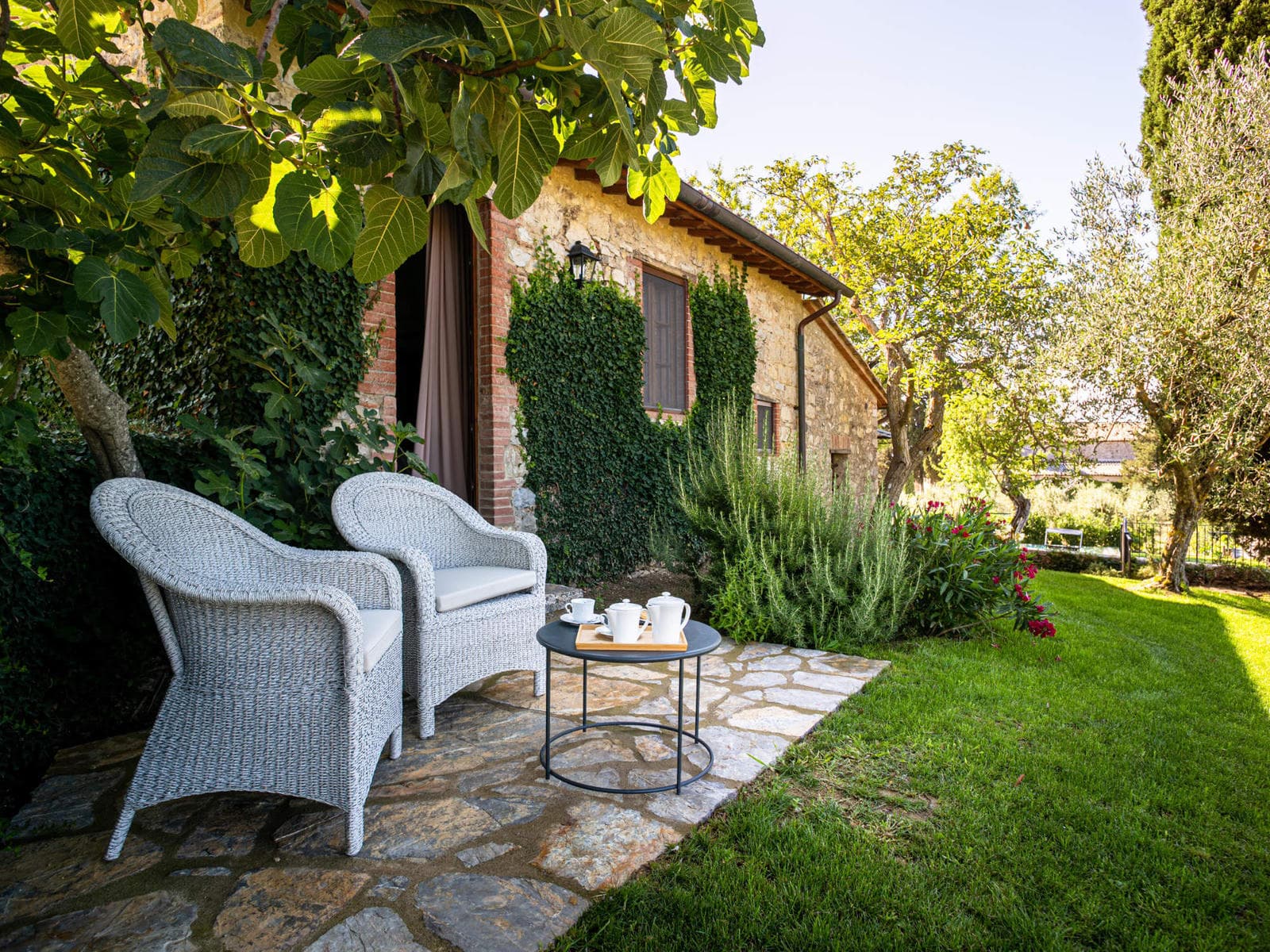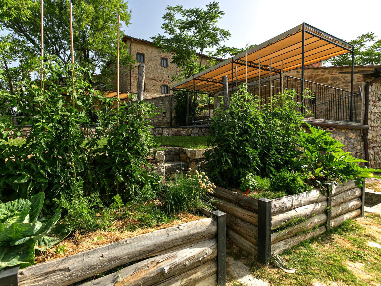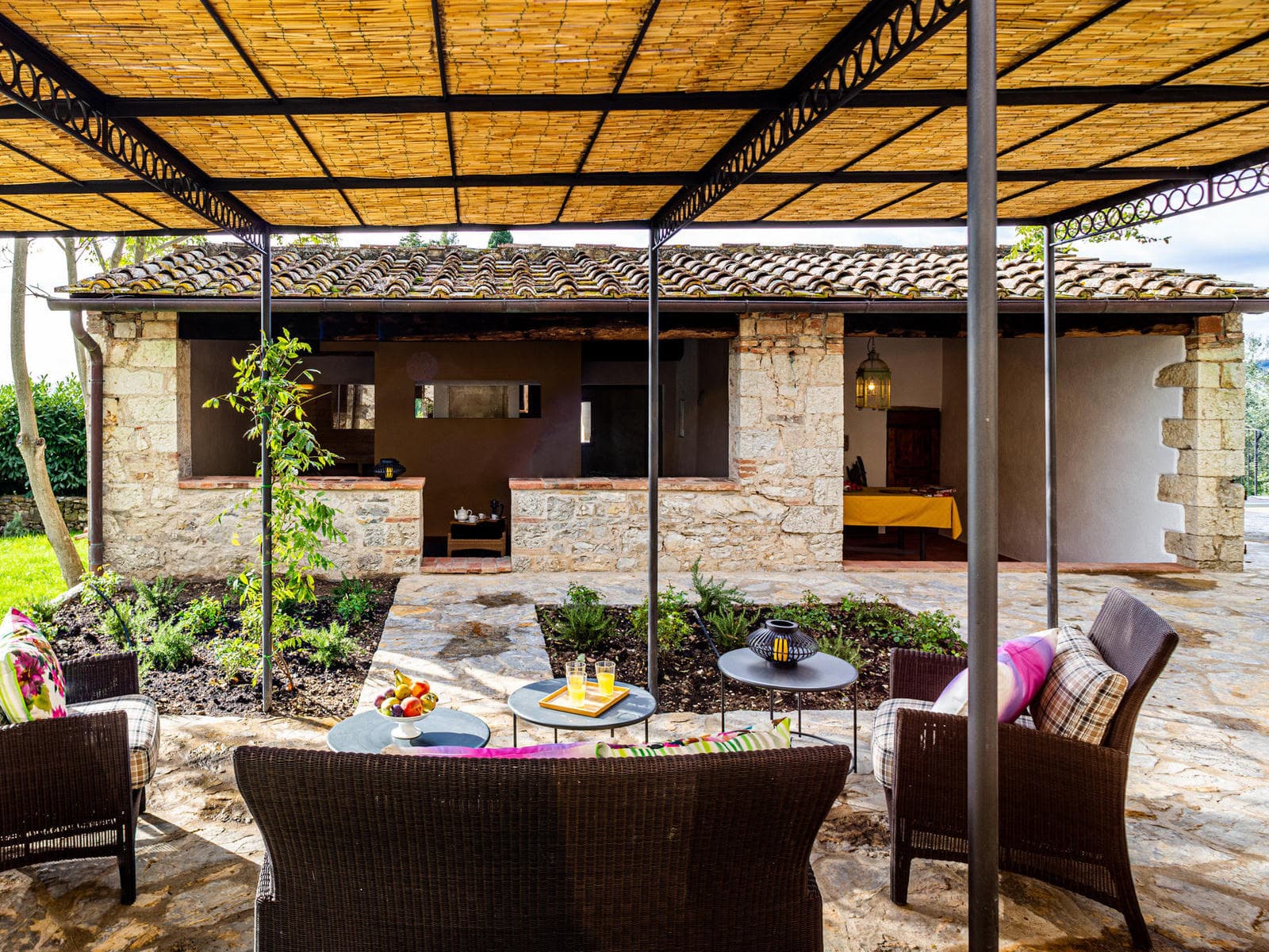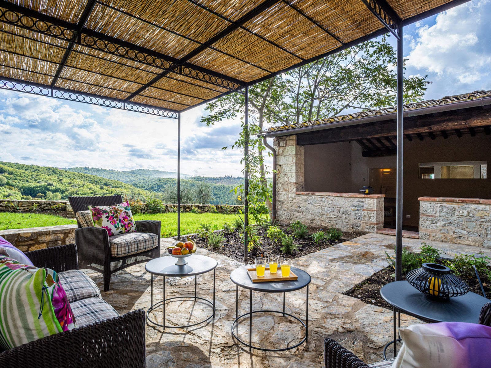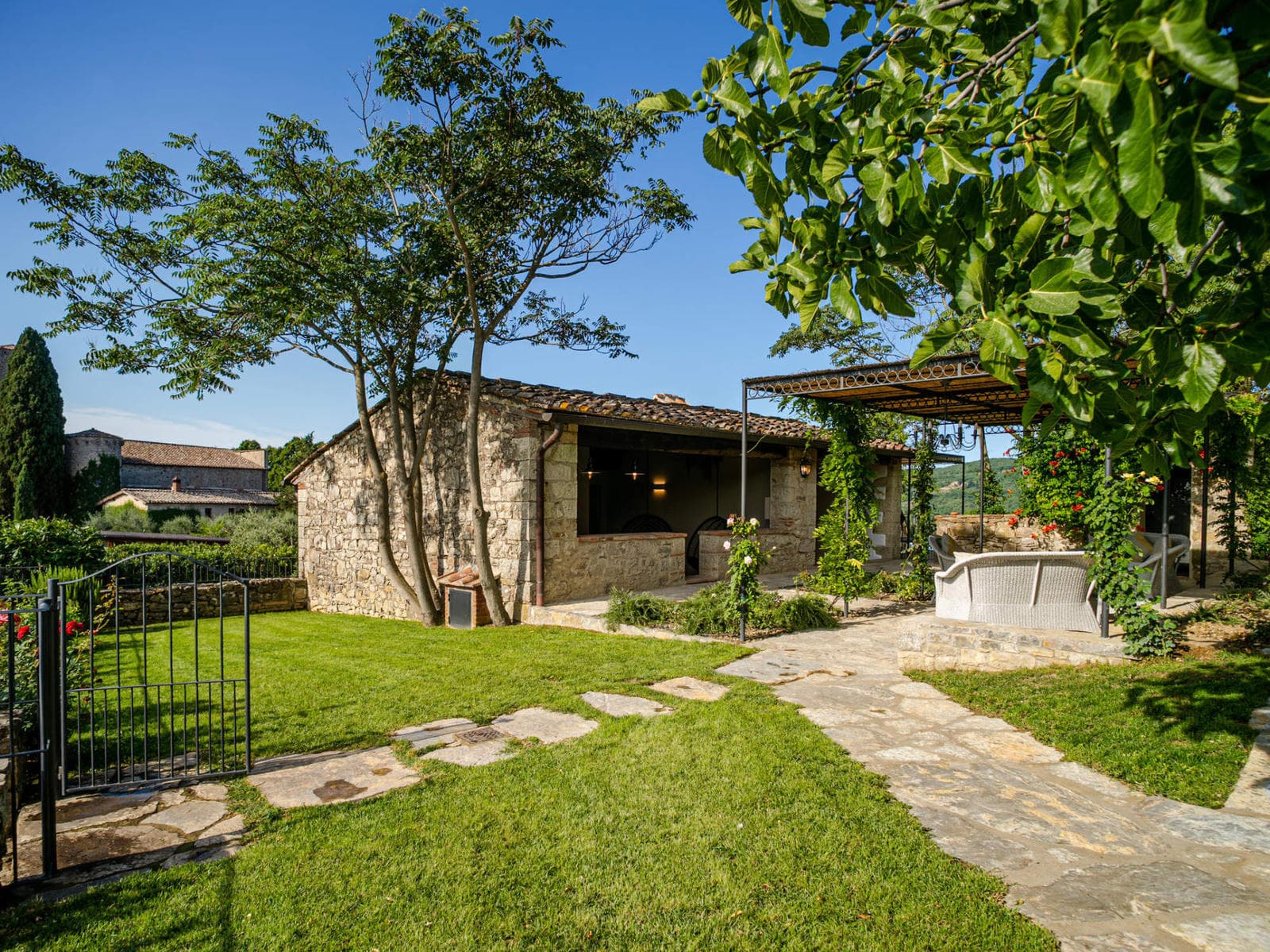 Outside by the pool a building houses a typical Tuscan pizza oven, as well as a sauna and a Turkish bath.