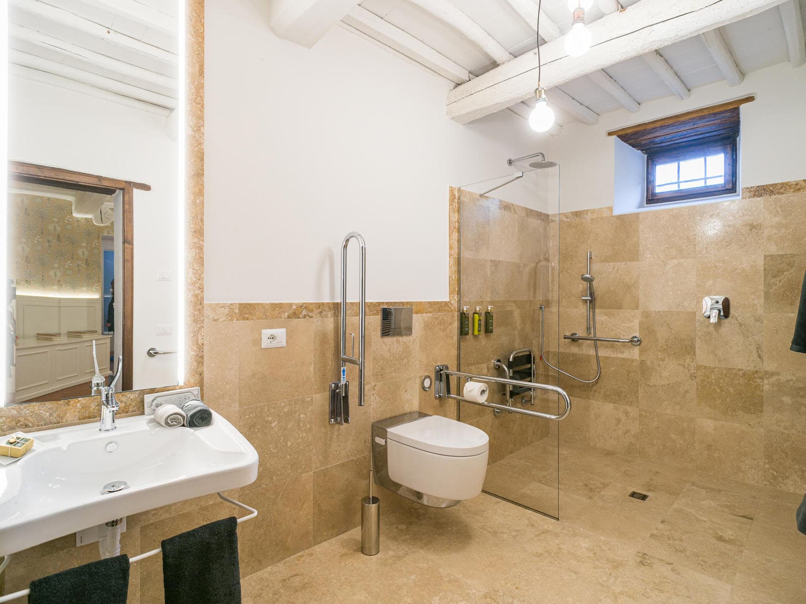 One bedroom and its bathroom are fully wheelchair accessible, and the private infinity-edge pool - with stepped access - ensures everyone can relax in style. The villa combines traditional Tuscan charm with modern comforts: air-conditioning, WiFi, large living spaces, a fully-equipped kitchen, and a shaded terrace ideal for al fresco dining, all in the heart of Chianti and its wineries, yet still within easy reach of the famous towns of Siena, Florence and San Gimignano.