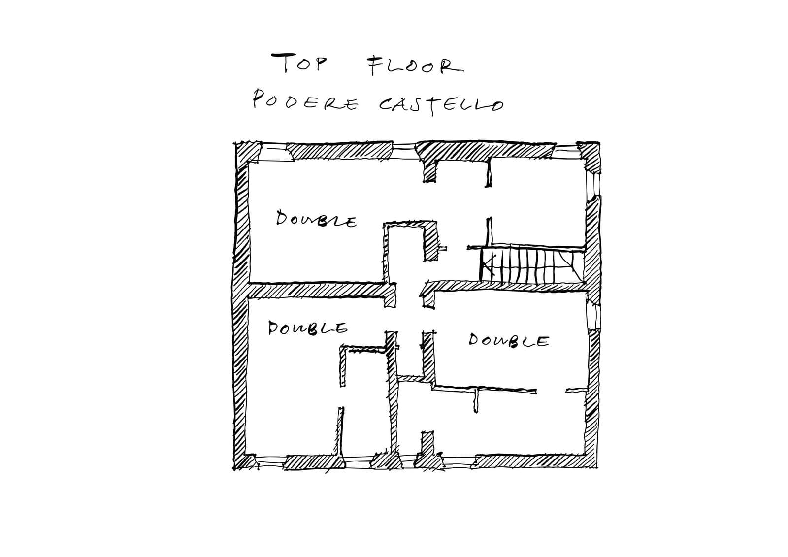 The last and top floor of Podere Castello has three ensuite doubles