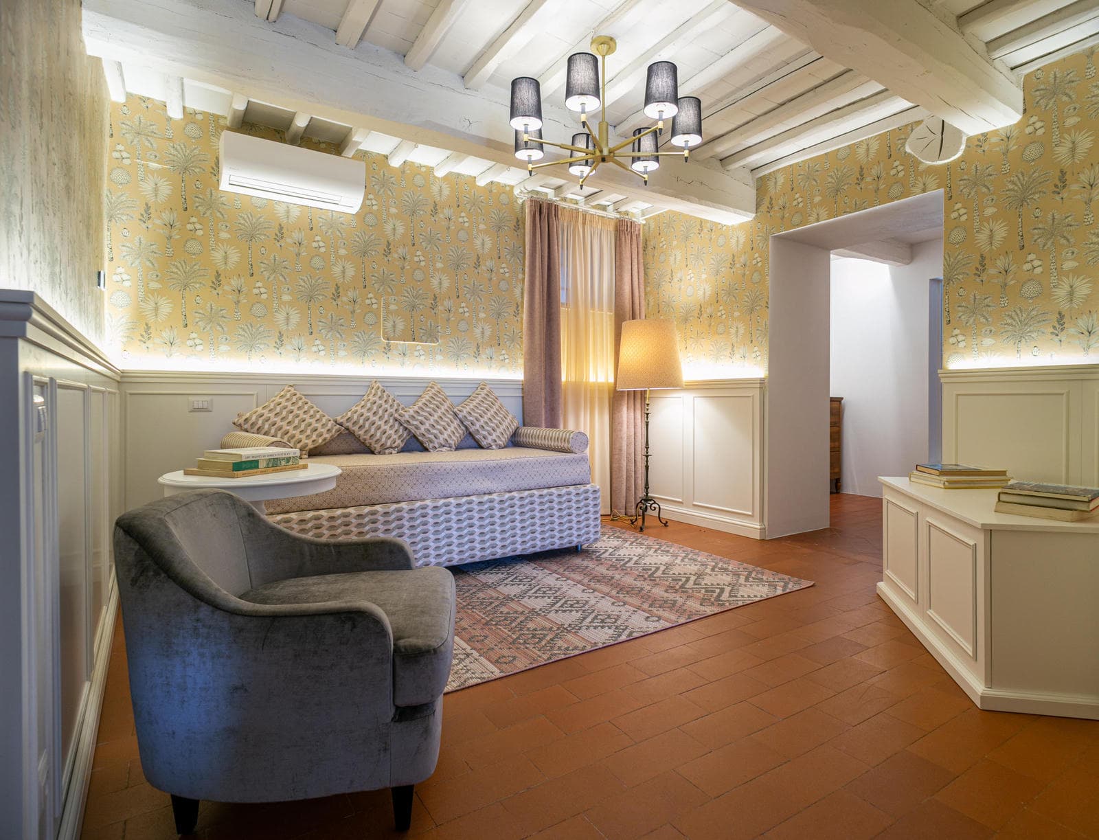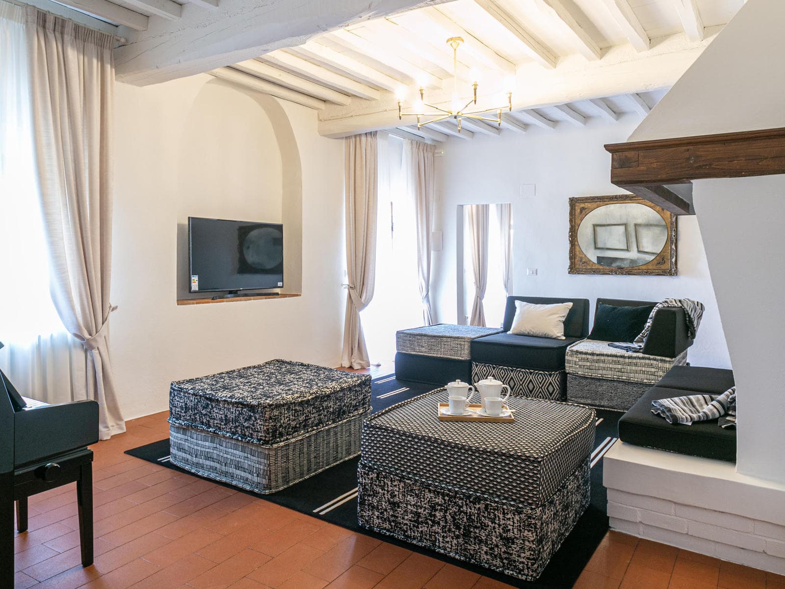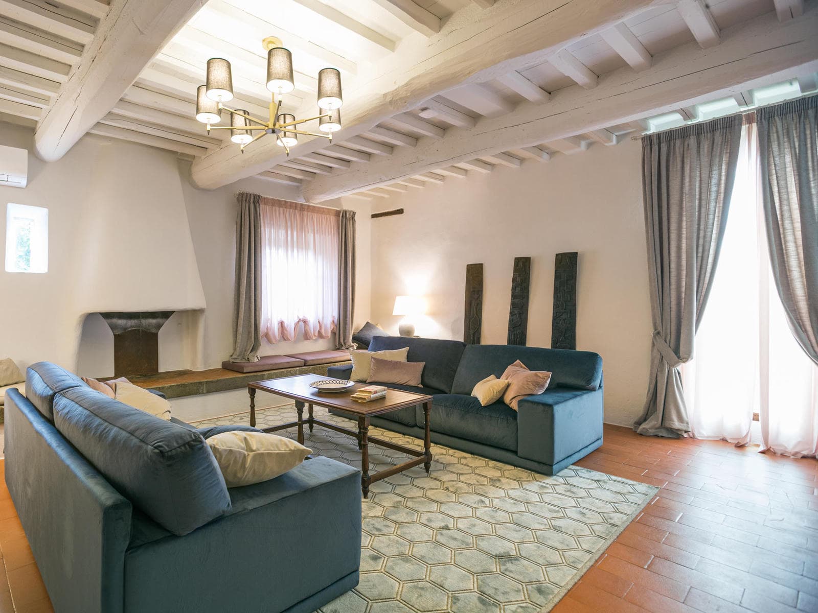 On the first floor you will also find a second living room on this floor, with sofas and a fireplace.