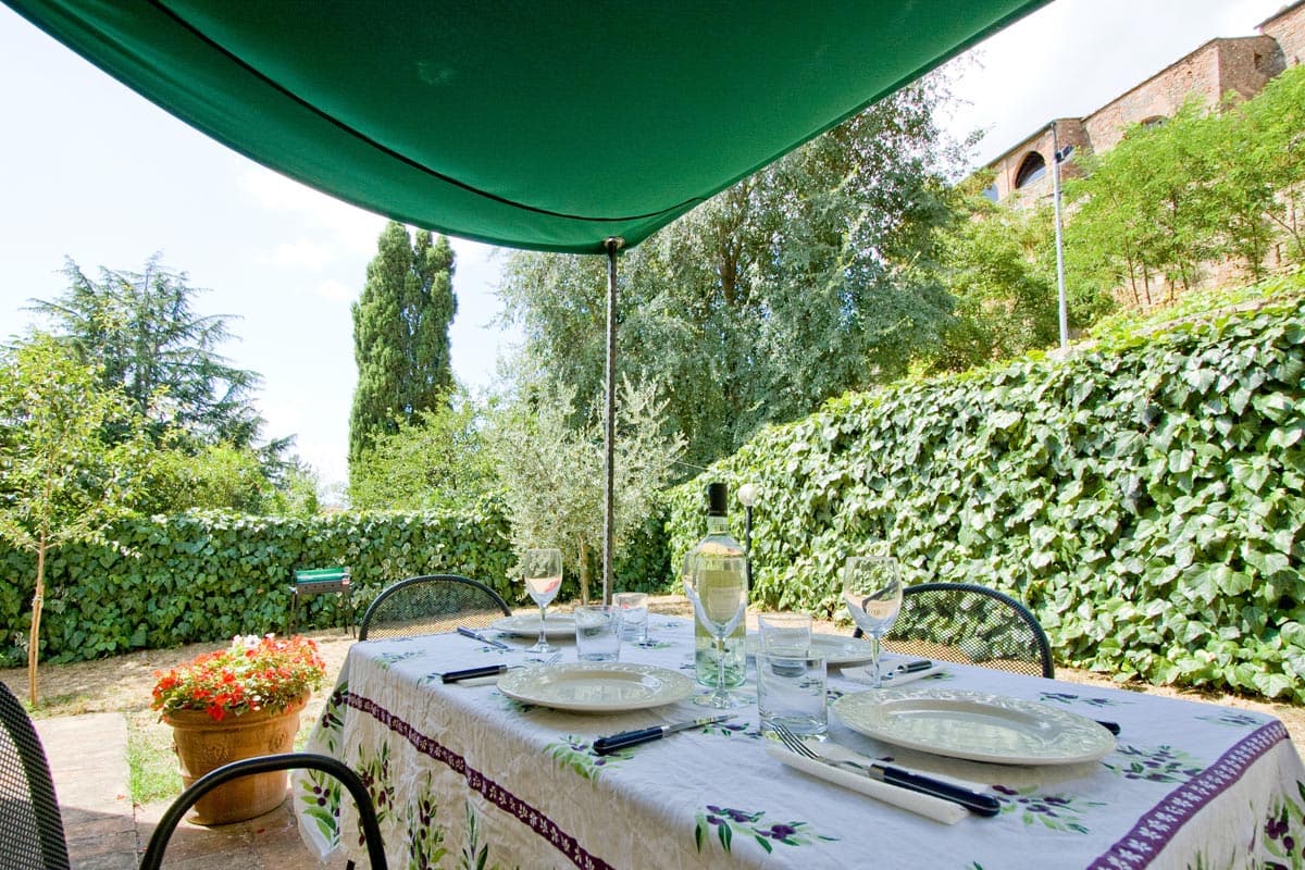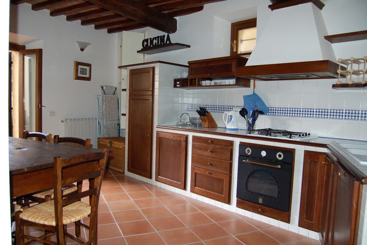 This is a charming village house made from the careful conversion and reconstruction of a much larger building in Casole. You can watch the many swallows swirling and diving around the back of the church above the rear of the house.
