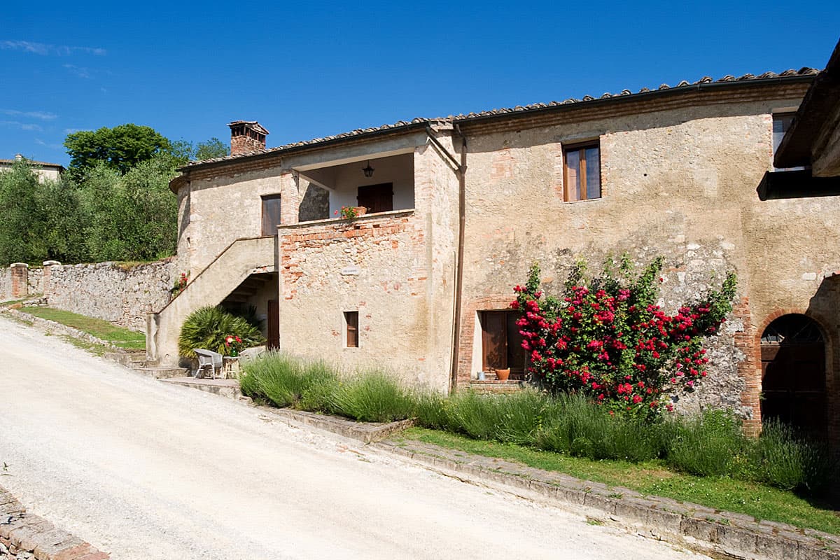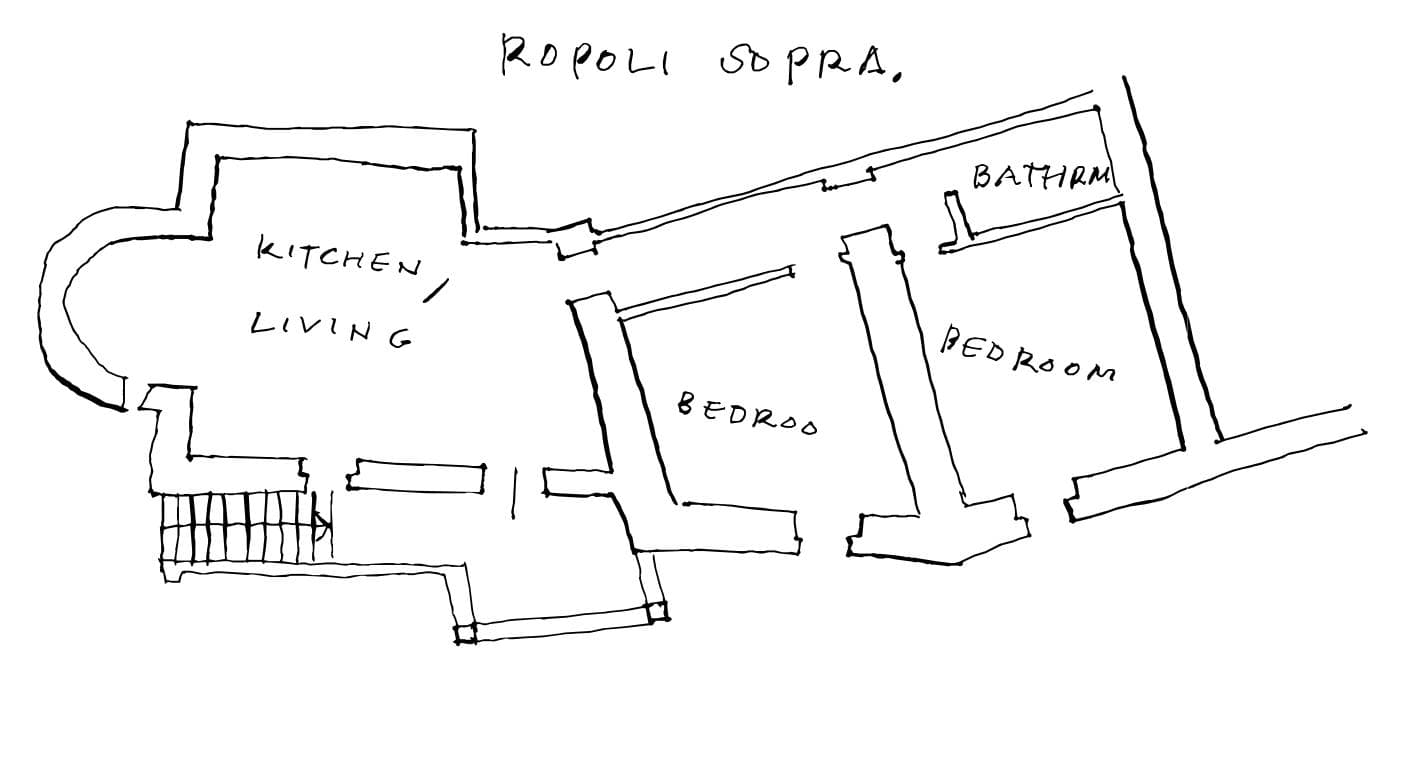 The hamlet is reached by winding up the hill on an ancient "strada bianca", a gravel road. The two Ropoli buildings are halfway up the hill. Stopping midway up the hill has some advantages and Ropoli Sopra enjoys them all.